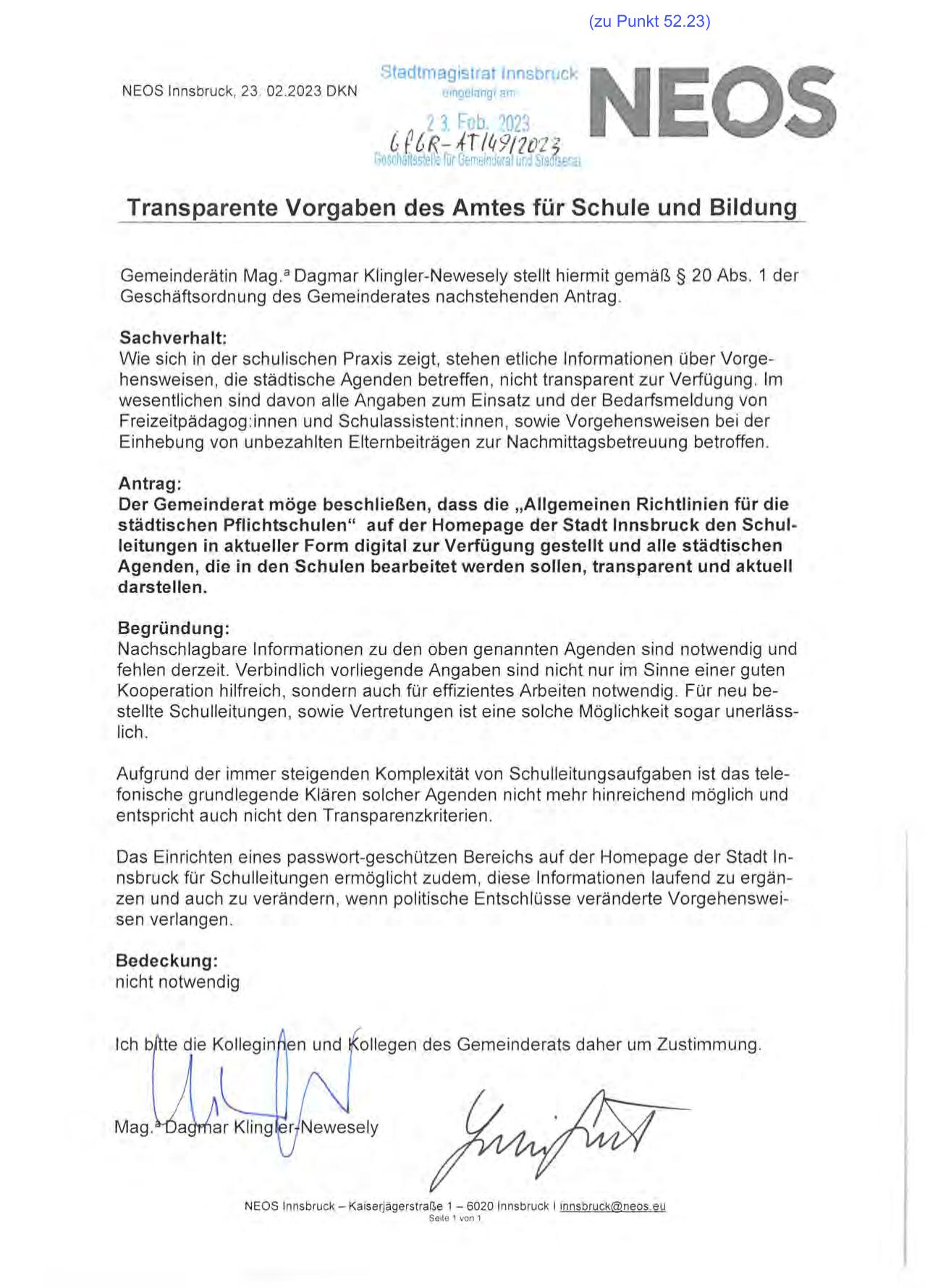 NEOS Innsbruck, 23 . 02 .2023 DKN