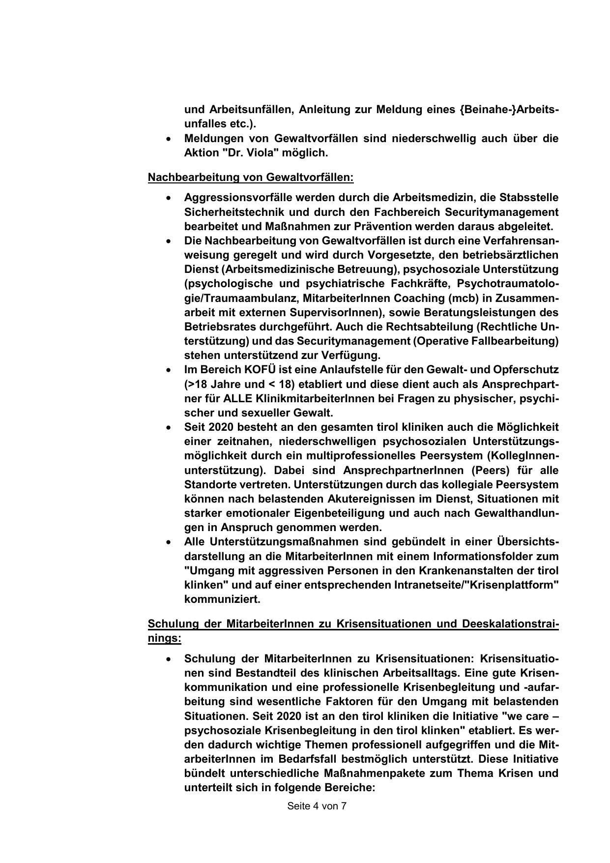 "Umgang mit aggressiven Personen in den Krankenanstalten der tirol