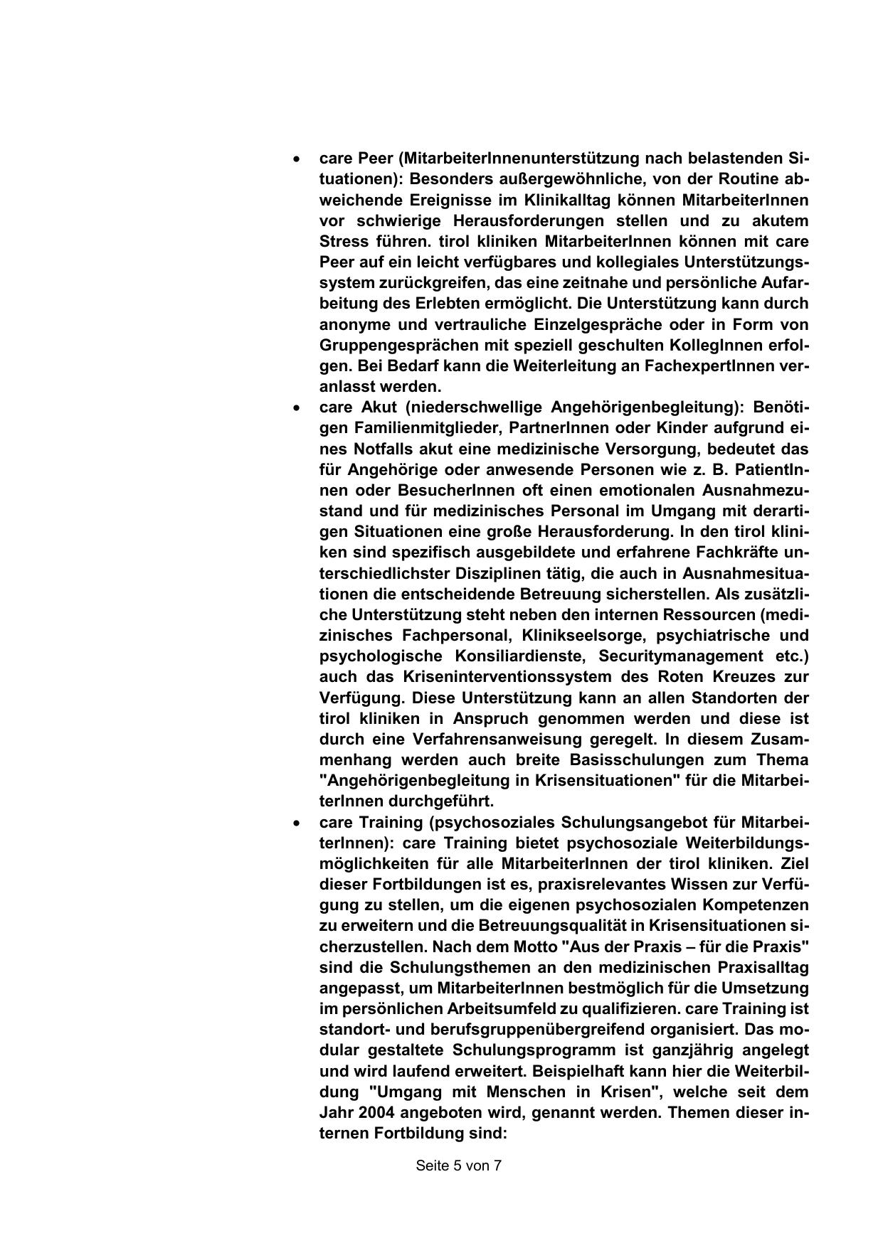 care Training (psychosoziales Schulungsangebot für MitarbeiterInnen): care Training bietet psychosoziale Weiterbildungsmöglichkeiten für alle MitarbeiterInnen der tirol kliniken. Ziel