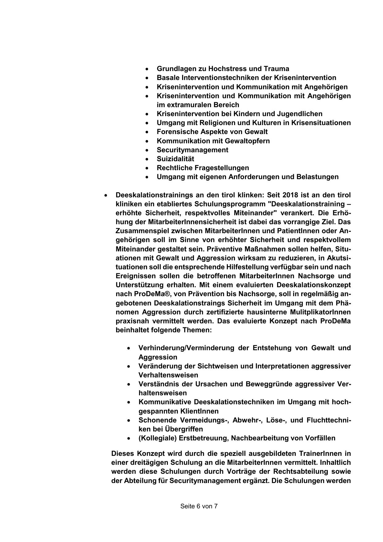Deeskalationstrainings an den tirol klinken: Seit 2018 ist an den tirol