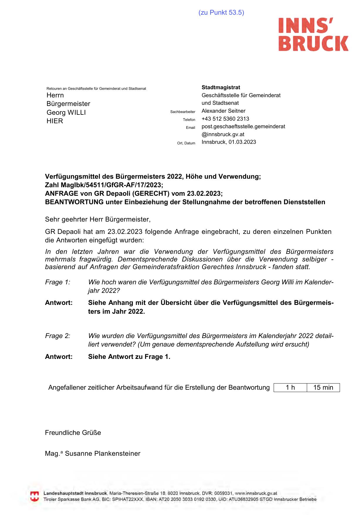 GR Depaoli hat am 23.02.2023 folgende Anfrage eingebracht, zu deren einzelnen Punkten