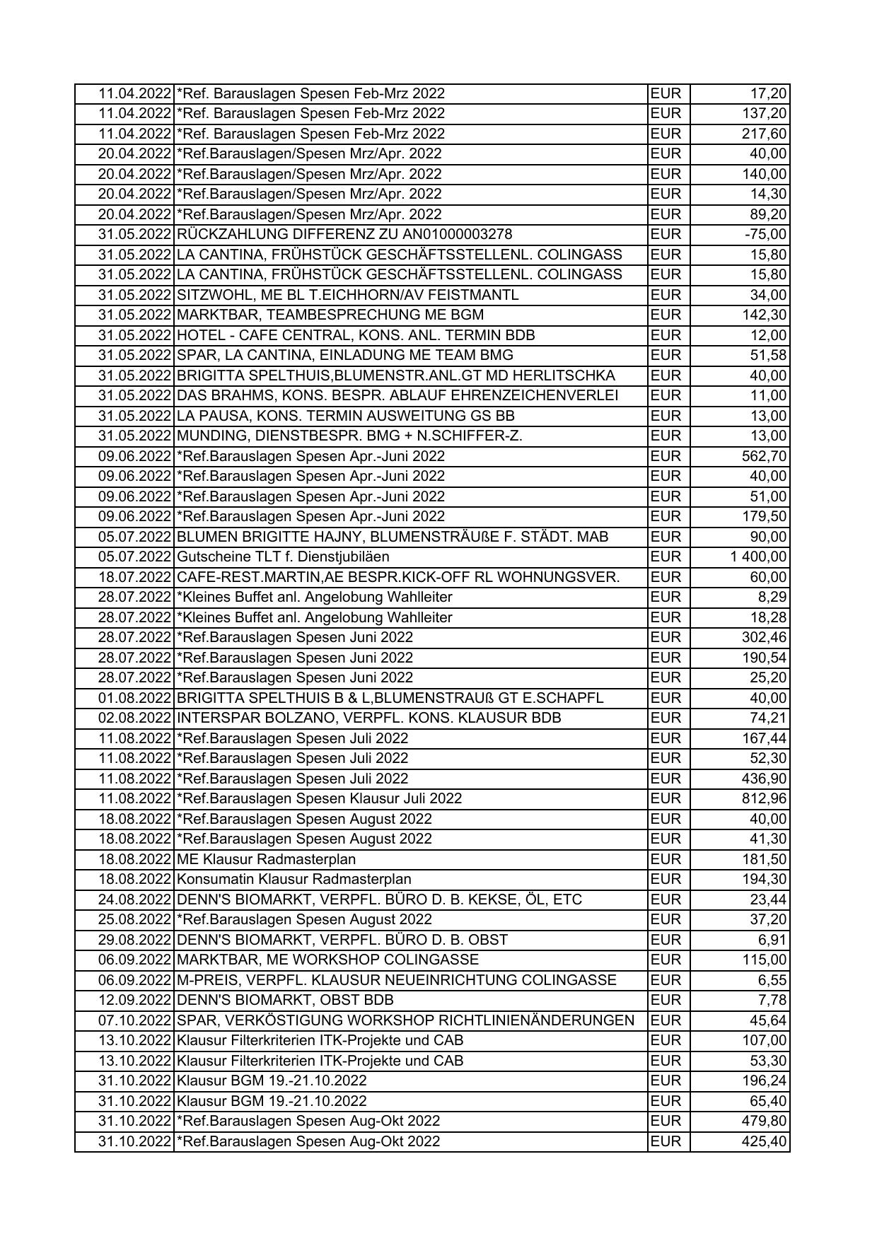 31.10.2022 *Ref.Barauslagen Spesen Aug-Okt 2022