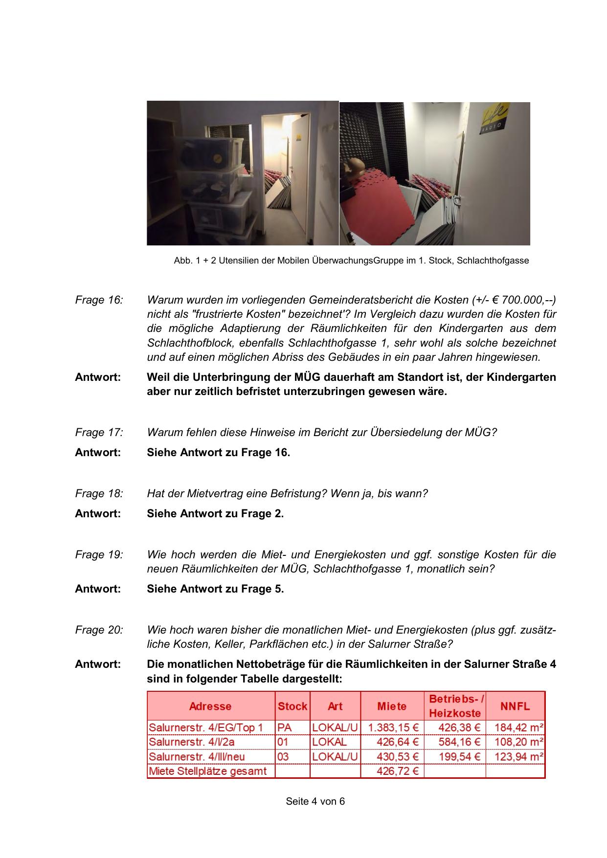 neuen Räumlichkeiten der MÜG, Schlachthofgasse 1, monatlich sein?