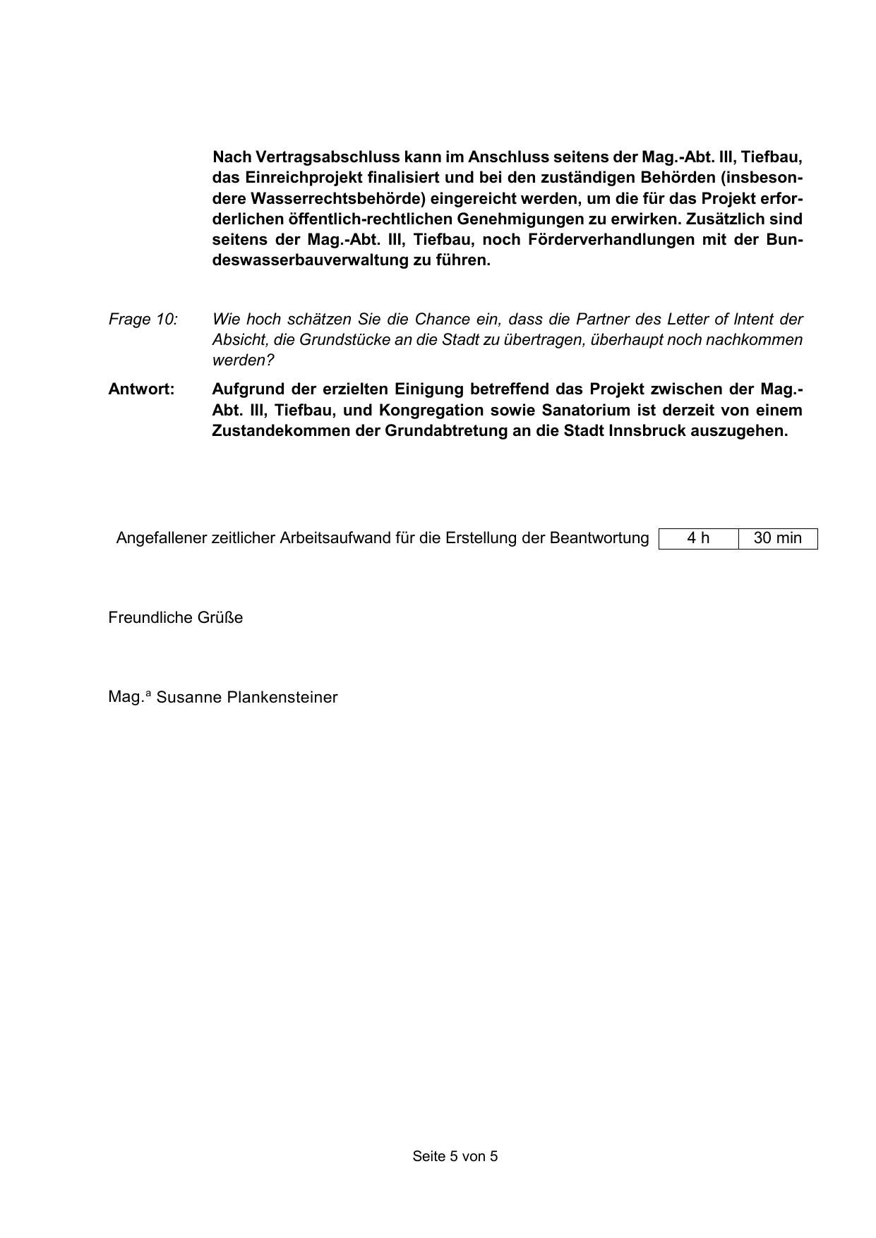 Angefallener zeitlicher Arbeitsaufwand für die Erstellung der Beantwortung