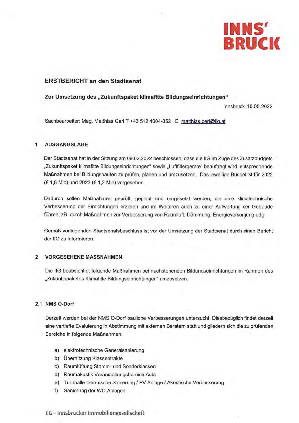 Gemäß vorliegenden Stadtsenatsbeschluss ist vor der Umsetzung der Stadtsenat durch einen Bericht