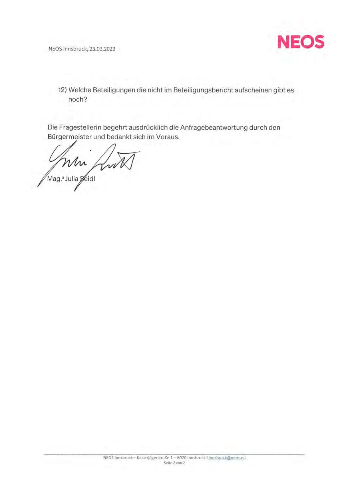 NEOS In nsbruck - Kaiserjägerstraße 1 - 6020 Innsbruck I innsbruck@neos.eu