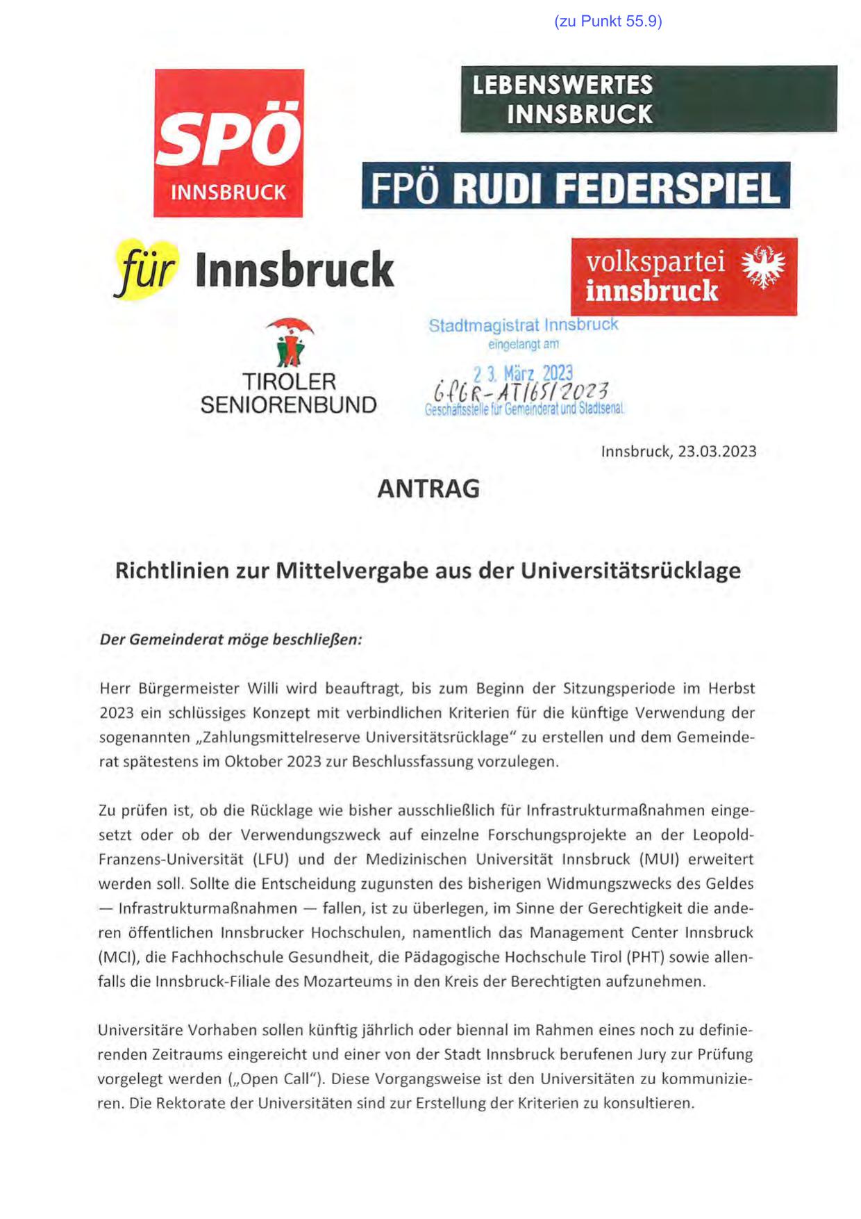 Zu prüfen ist, ob die Rücklage wie bisher ausschließlich für lnfrastrukturmaßnahmen eingesetzt oder ob der Verwendungszweck auf einzelne Forschungsprojekte an der LeopoldFranzens-Universität (LFU) und der Medizinischen Universität Innsbruck (MUI) erweitert ·