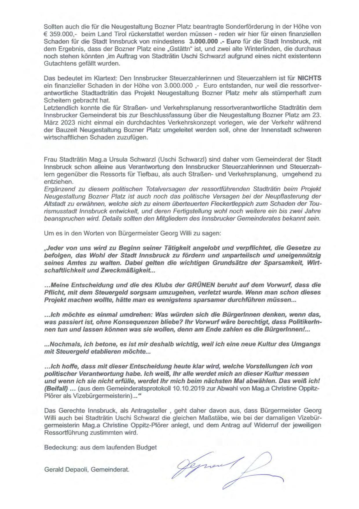 Das Gerechte Innsbruck, als Antragsteller , geht daher davon aus, dass Bürgermeister Georg