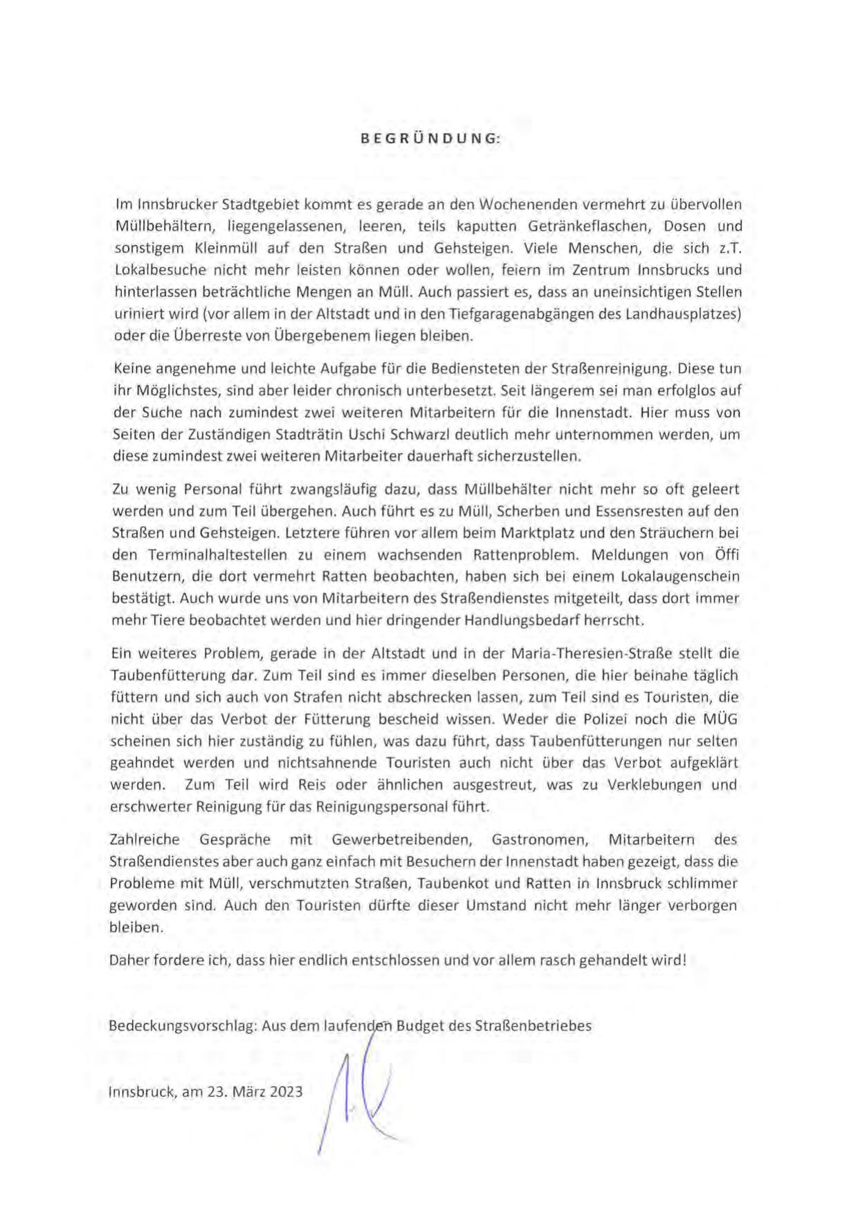 der Suche nach zumindest zwei weiteren Mitarbeitern für die Innenstadt. Hier muss von
