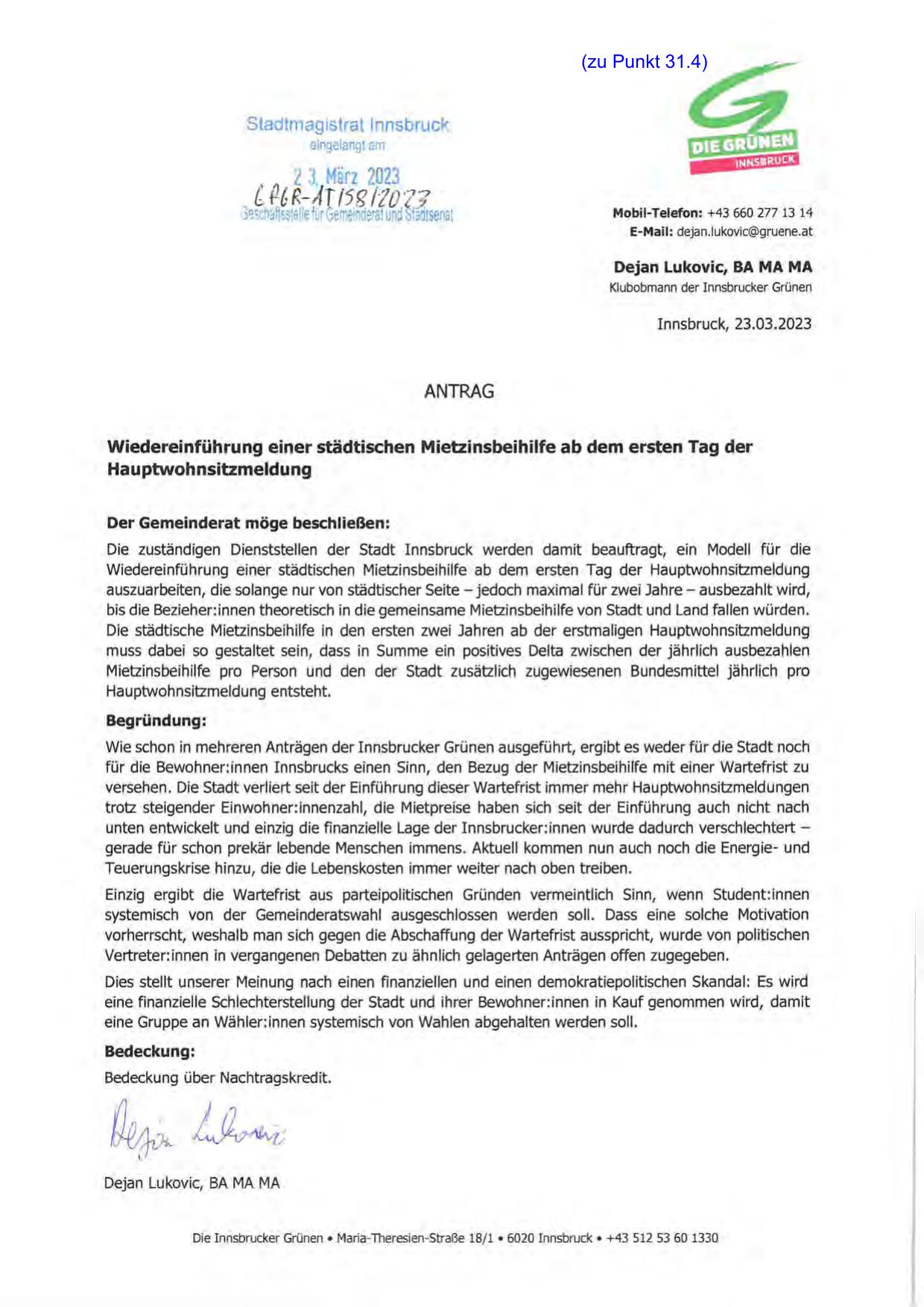 für die Bewohner:innen Innsbrucks einen Sinn, den Bezug der Mietzinsbeihilfe mit einer Wartefrist zu