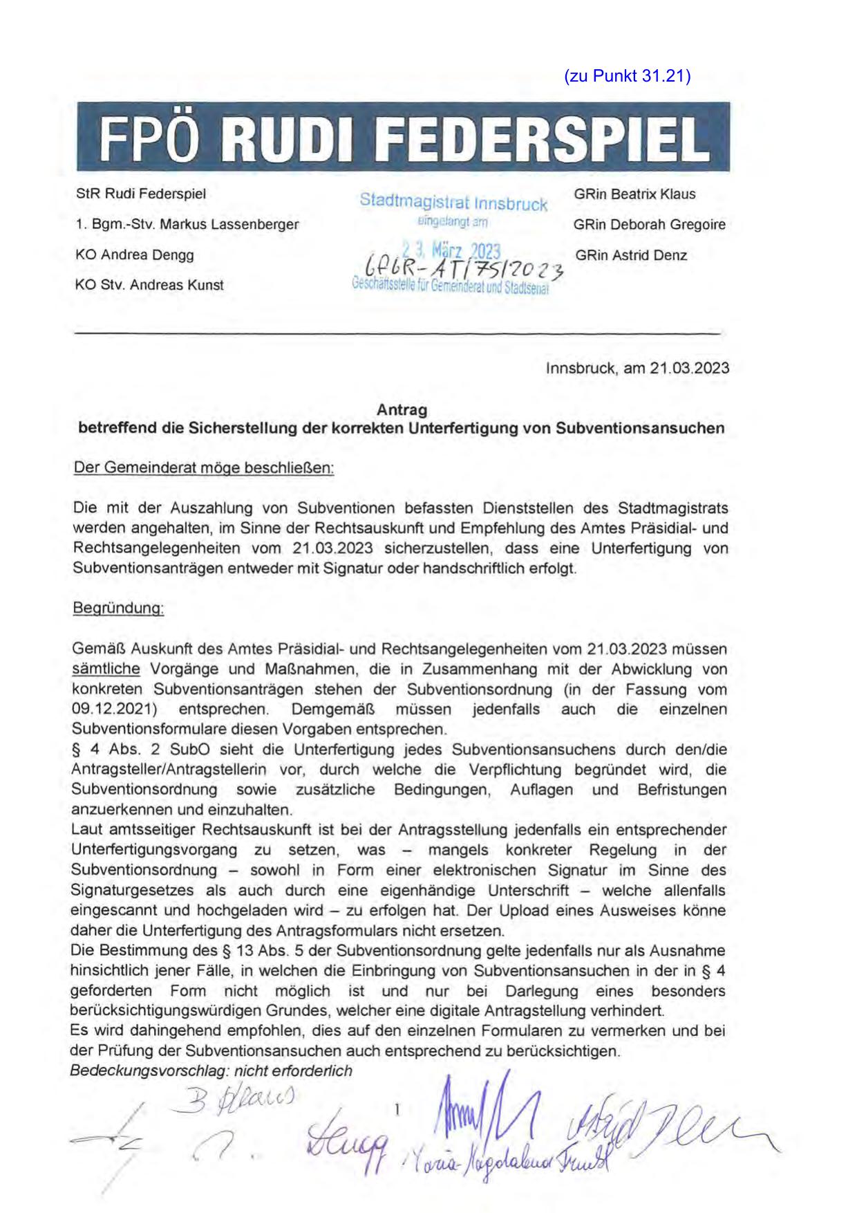 Rechtsangelegenheiten vom 21 .03.2023 sicherzustellen, dass eine Unterfertigung von