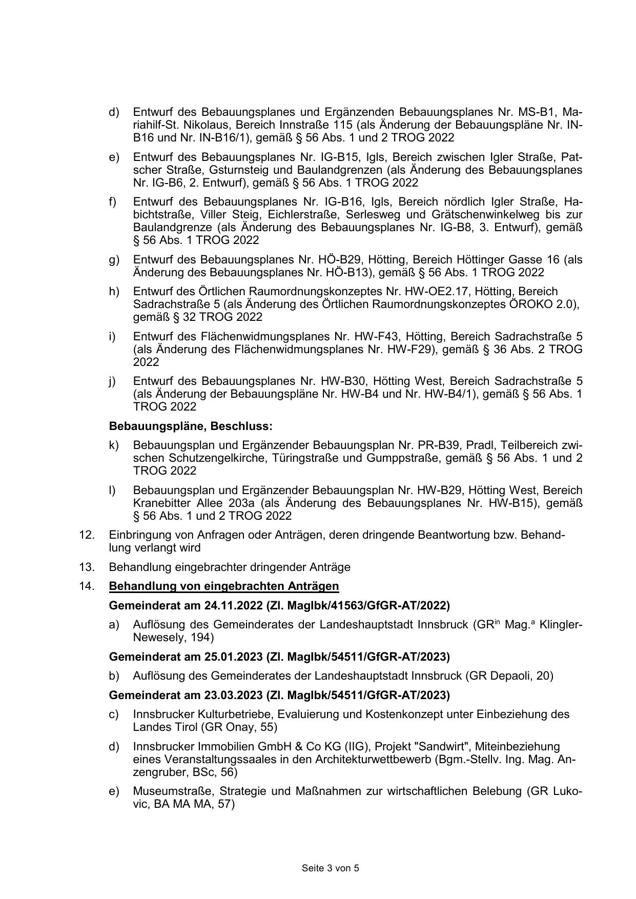 Gemeinderat am 23.03.2023 (Zl. MagIbk/54511/GfGR-AT/2023)