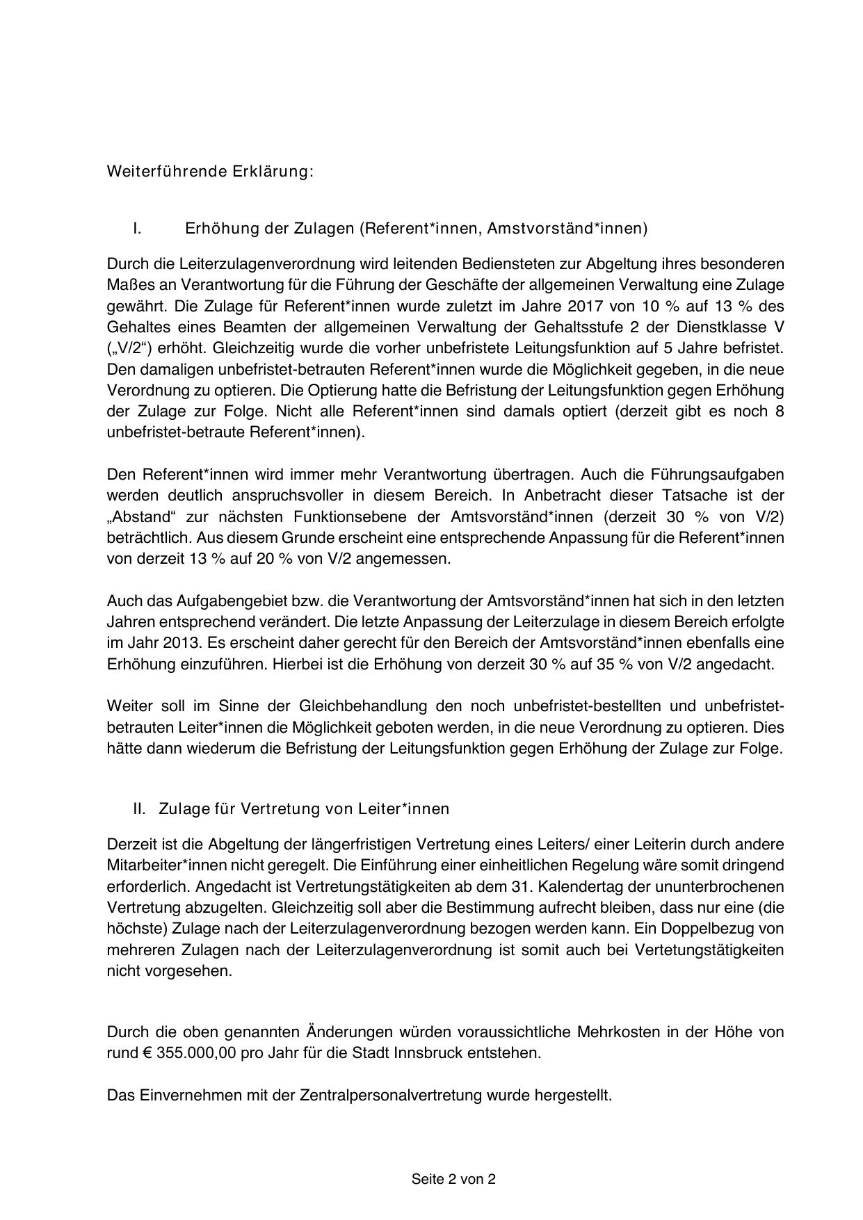 („V/2“) erhöht. Gleichzeitig wurde die vorher unbefristete Leitungsfunktion auf 5 Jahre befristet.