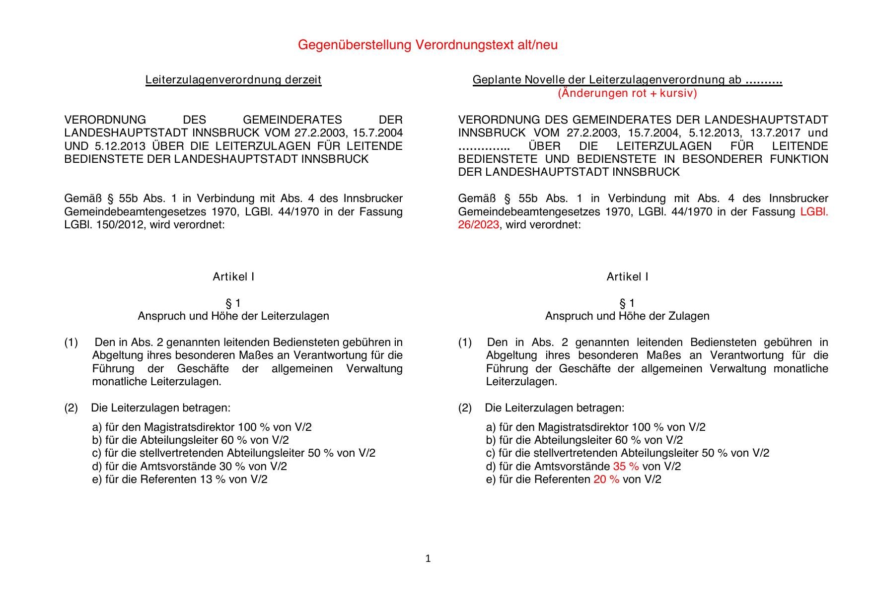 Geplante Novelle der Leiterzulagenverordnung ab ……….