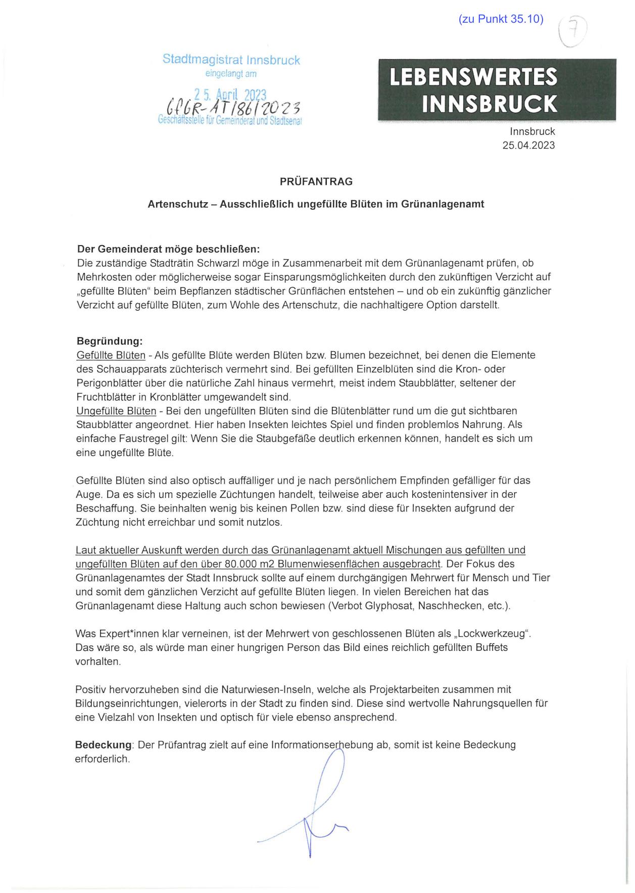 Die zuständige Stadträtin Schwarz! möge in Zusammenarbeit mit dem Grünanlagenamt prüfen , ob