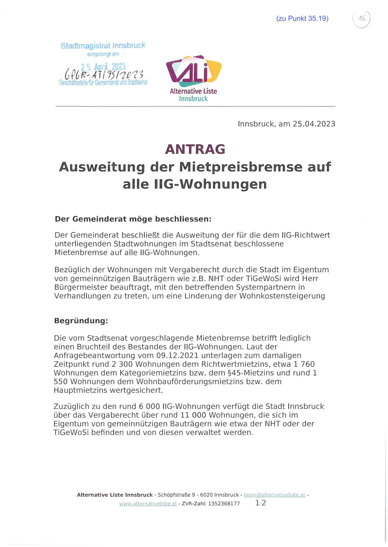 Alternative Liste Innsbruck - Schöpfst raße 9 - 6020 Innsbruck - team@alternativeliste.at www.alternativeliste.at - ZVR-Zahl : 1352368 177