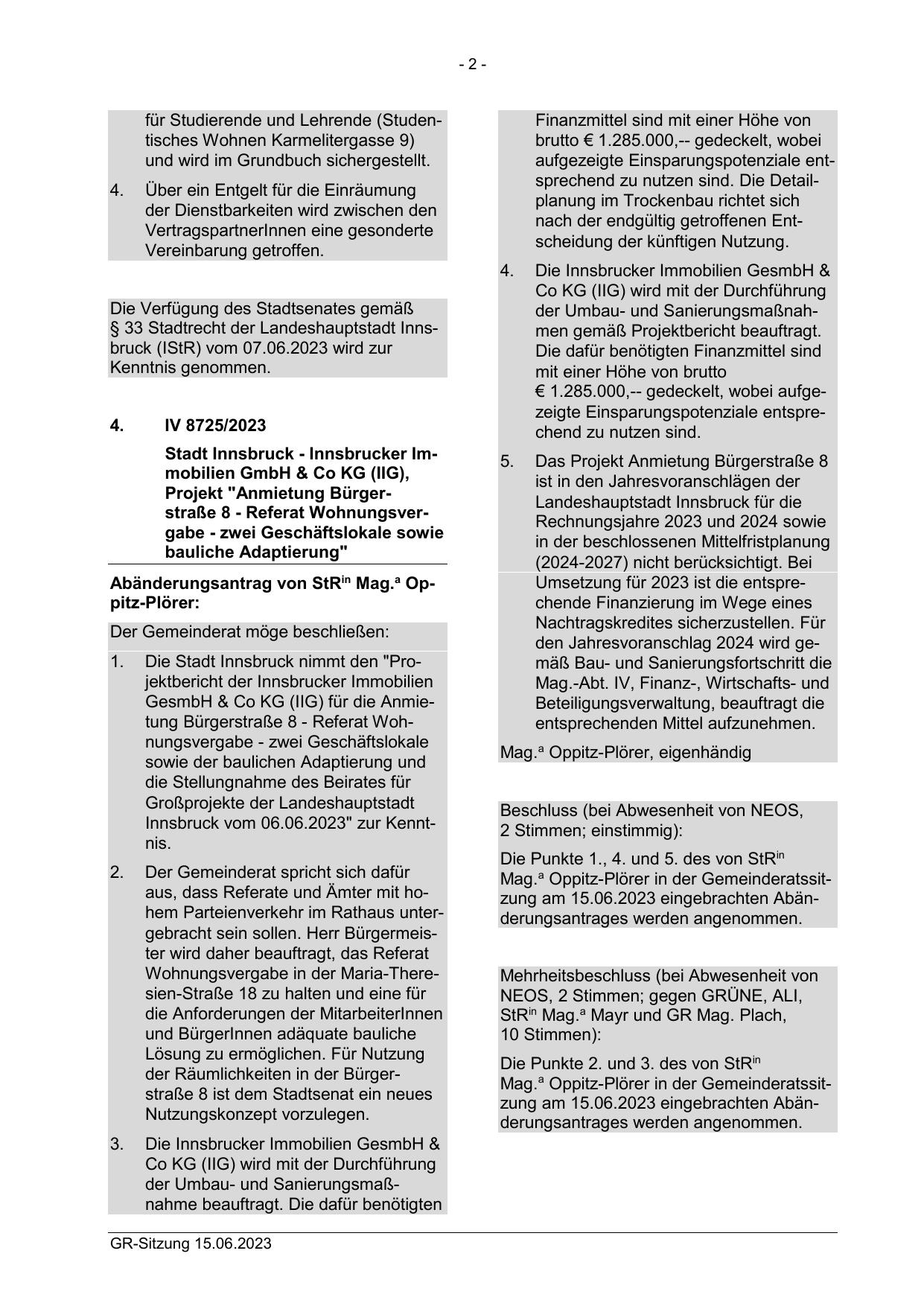 Mag.a Oppitz-Plörer in der Gemeinderatssitzung am 15.06.2023 eingebrachten Abänderungsantrages werden angenommen.