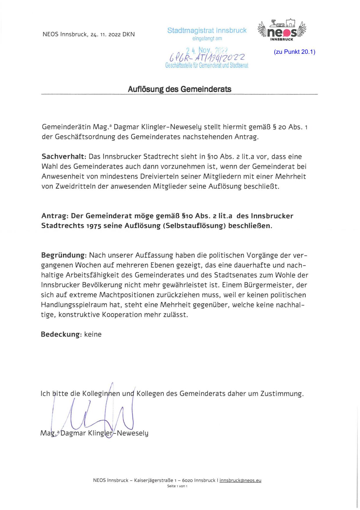 NEOS Innsbruck, 24.11 . 2022 DKN