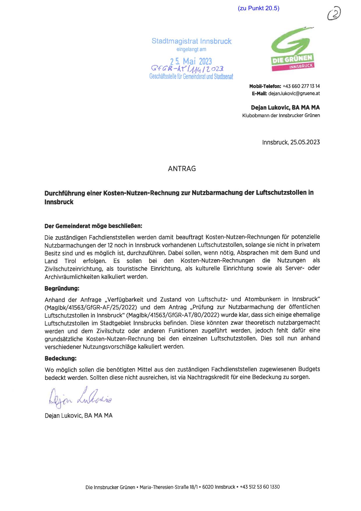 (Maglbk/41563/GfGR-AF/25/2022) und dem Antrag "Prüfung zur Nutzbarmachung der öffentlichen