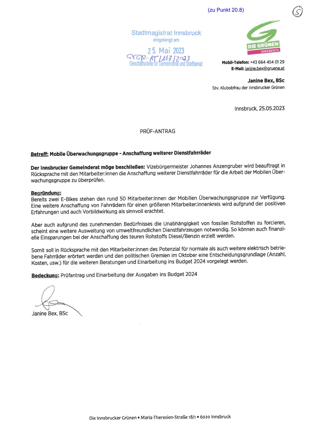 Der Innsbrucker Gemeinderat möge beschließen: Vizebürgermeister Johannes Anzengruber wird beauftragt in