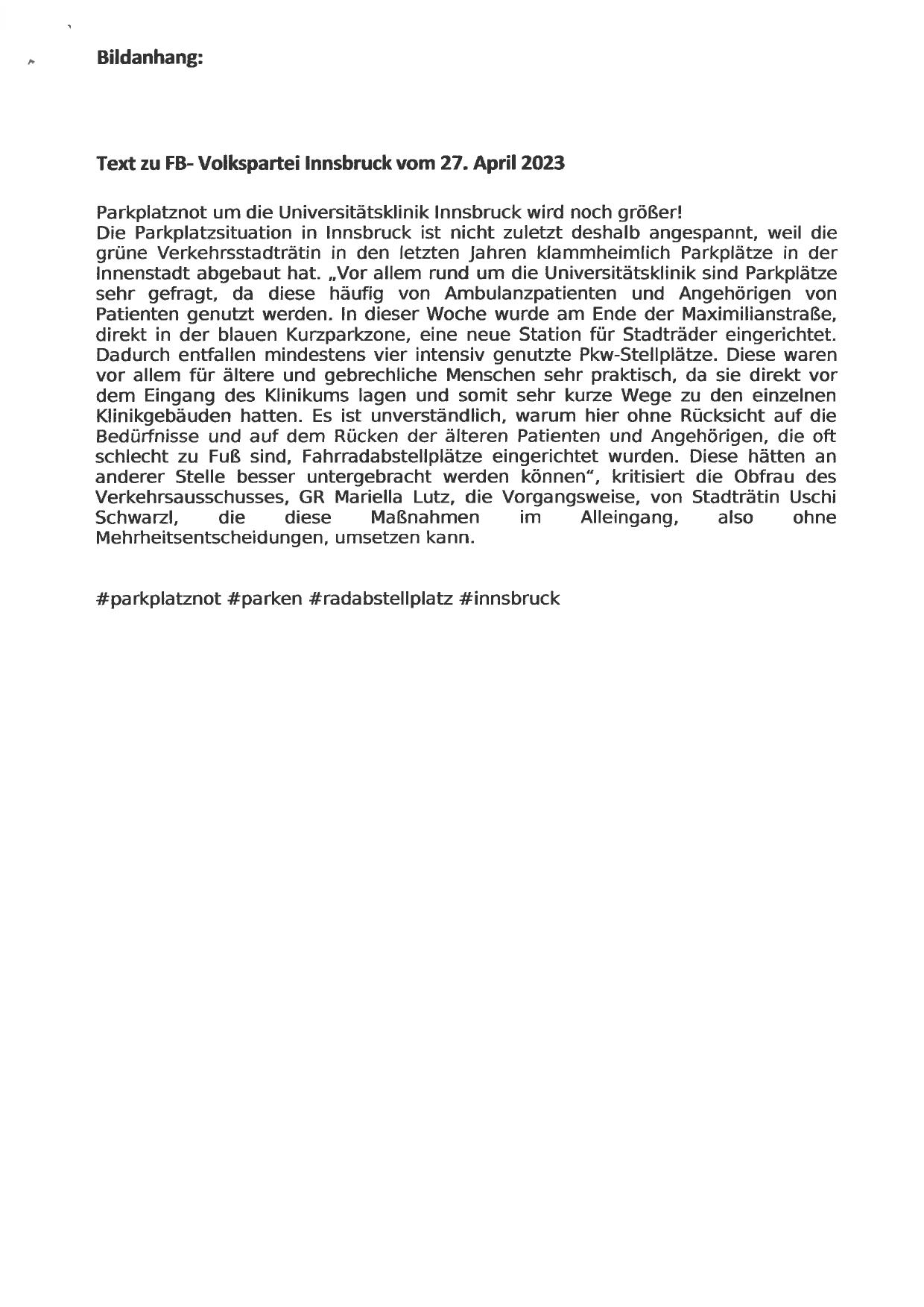 Text zu FB-Volkspartei Innsbruck vom 27. April 2023