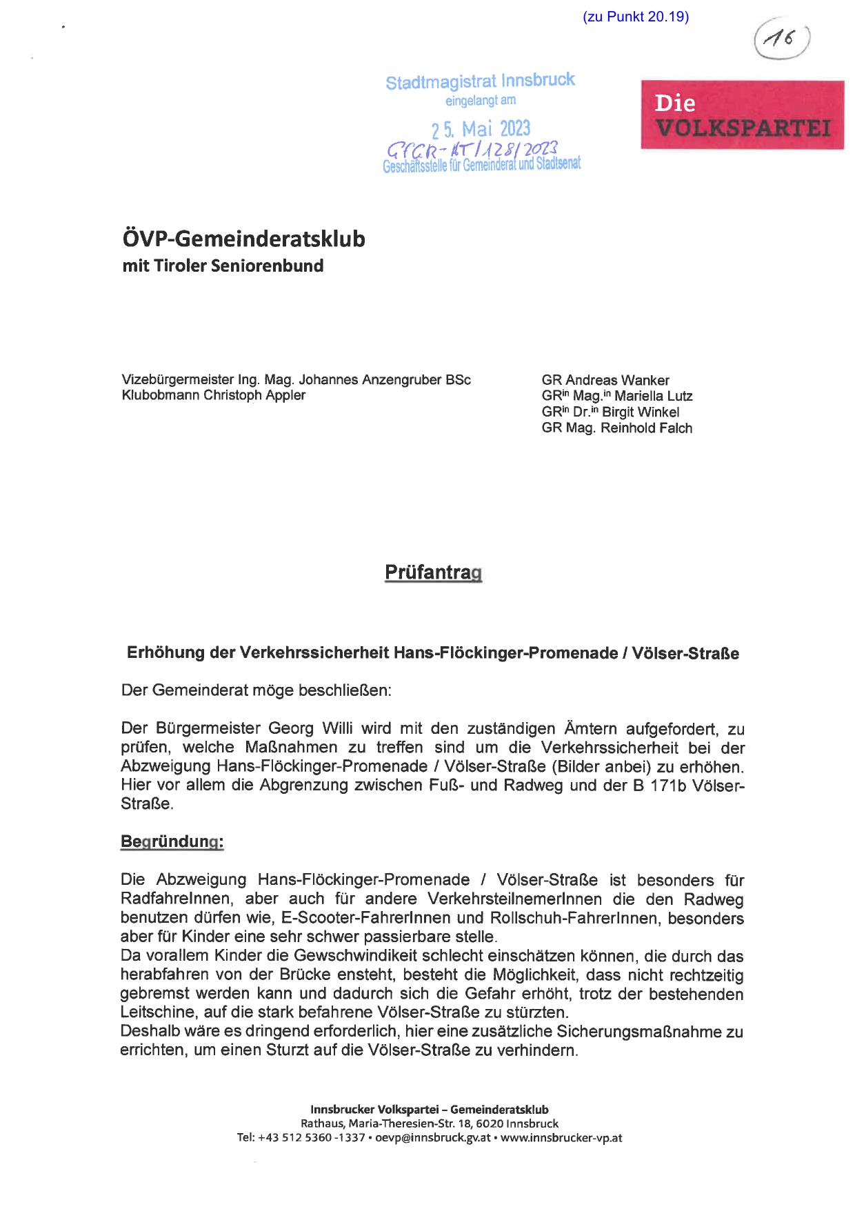 Erhöhungder VerkehrssicherheitHans-Flöckinger-Promenade/ Völser-Straße