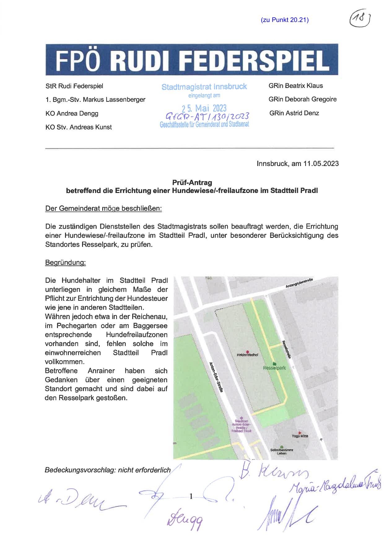 betreffend die Errichtung einer Hundewiese/-freilaufzone im Stadtteil Pradl