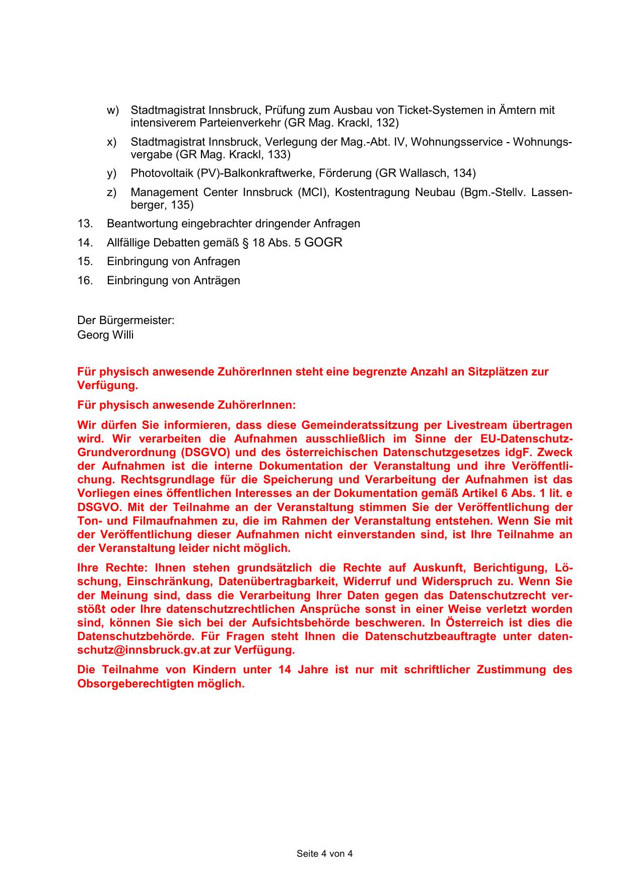 Wir dürfen Sie informieren, dass diese Gemeinderatssitzung per Livestream übertragen