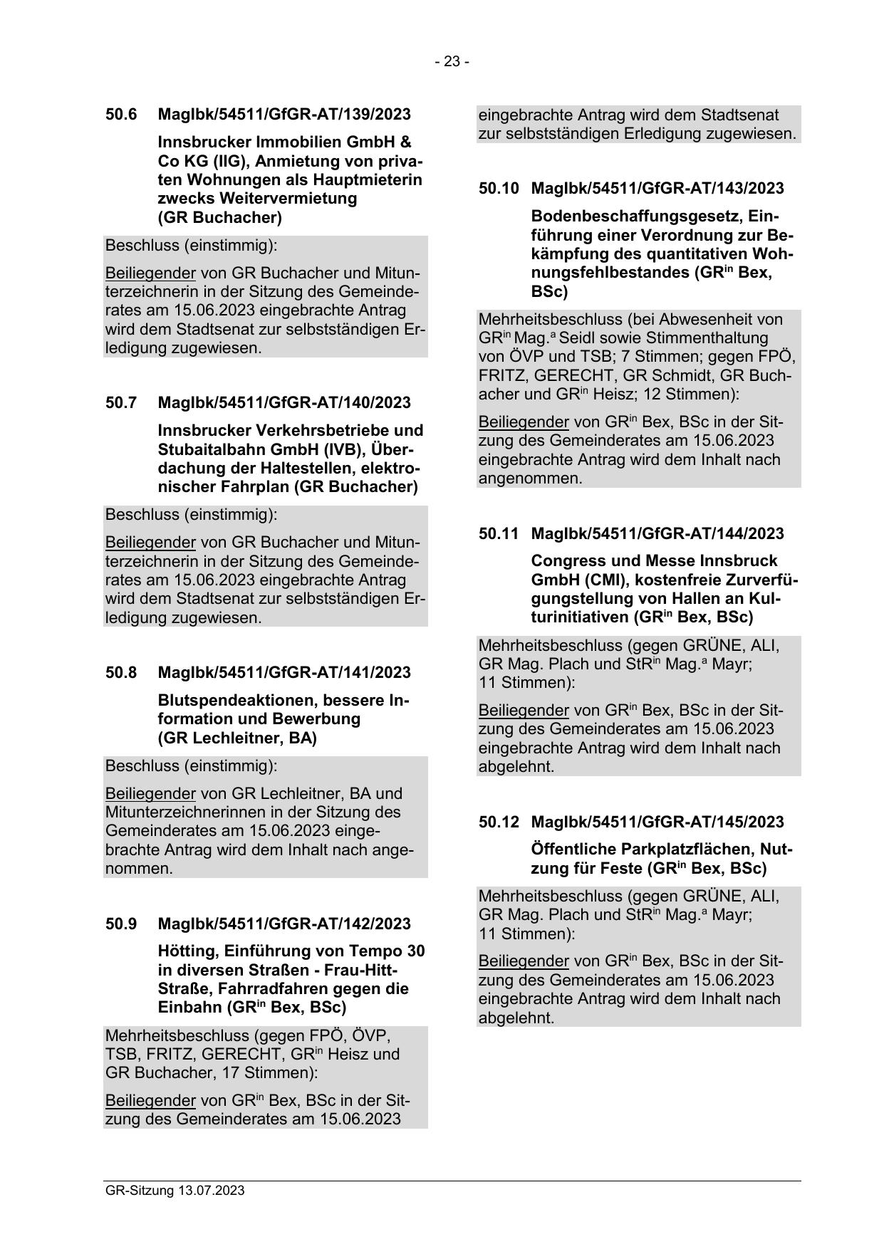 Beiliegender von GRin Bex, BSc in der Sitzung des Gemeinderates am 15.06.2023