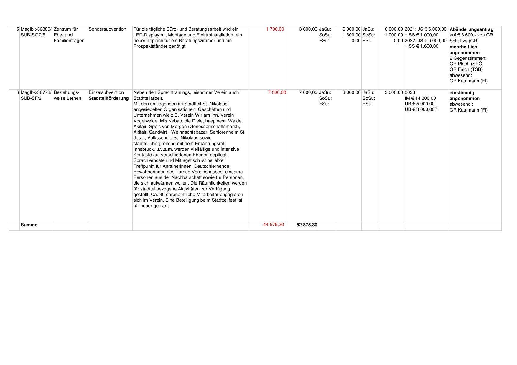6 000.00 2021: JS € 6.000,00 Abänderungsantrag