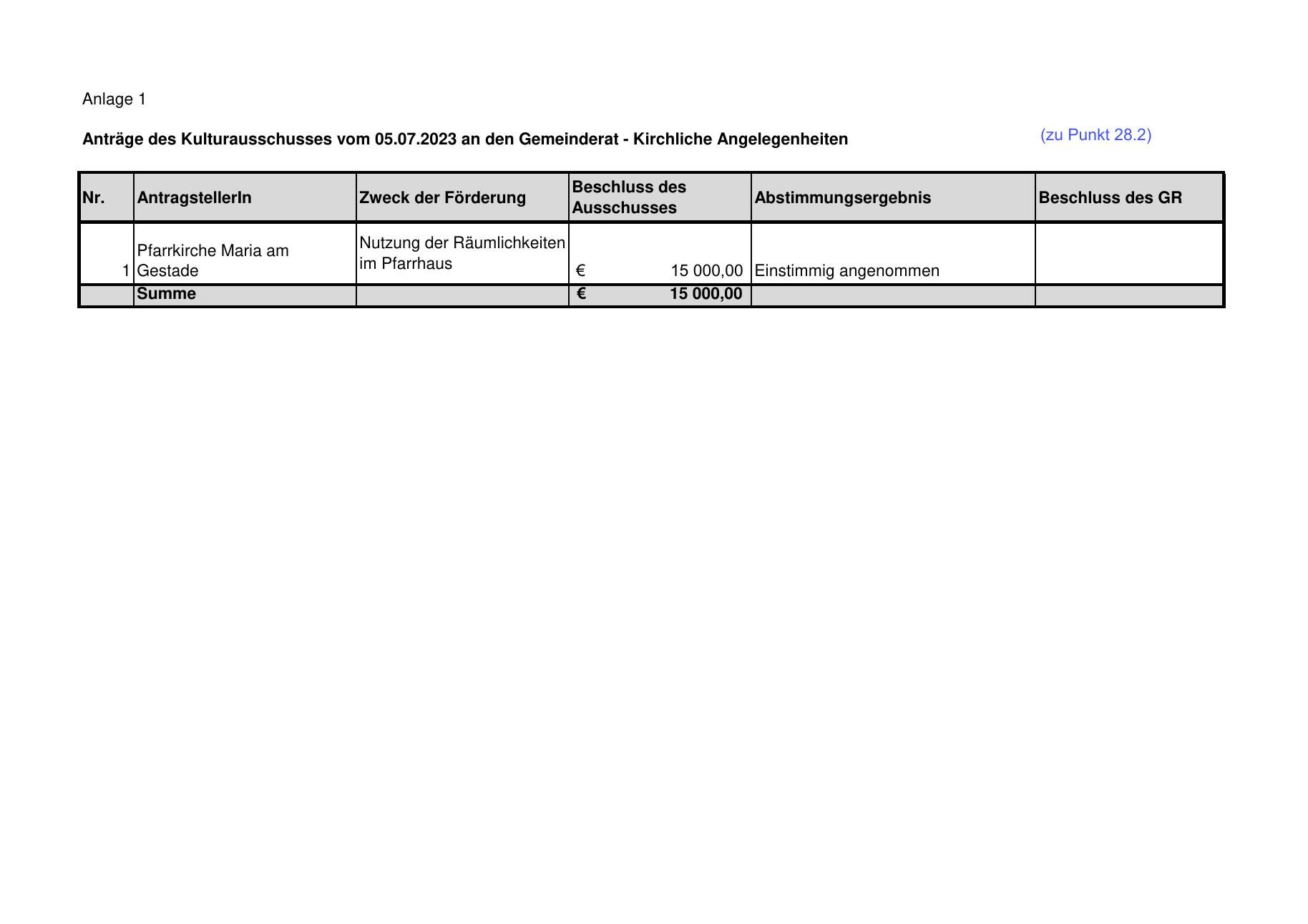 Anträge des Kulturausschusses vom 05.07.2023 an den Gemeinderat - Kirchliche Angelegenheiten