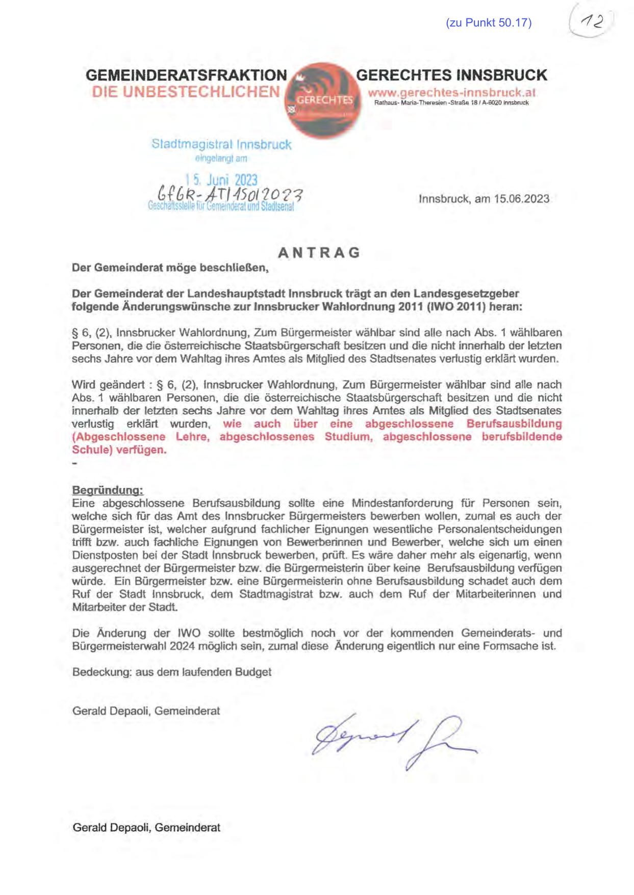 Dienstposten bei der Stadt Innsbruck bewerben, prüft. Es wäre daher mehr als eigenartig, wenn