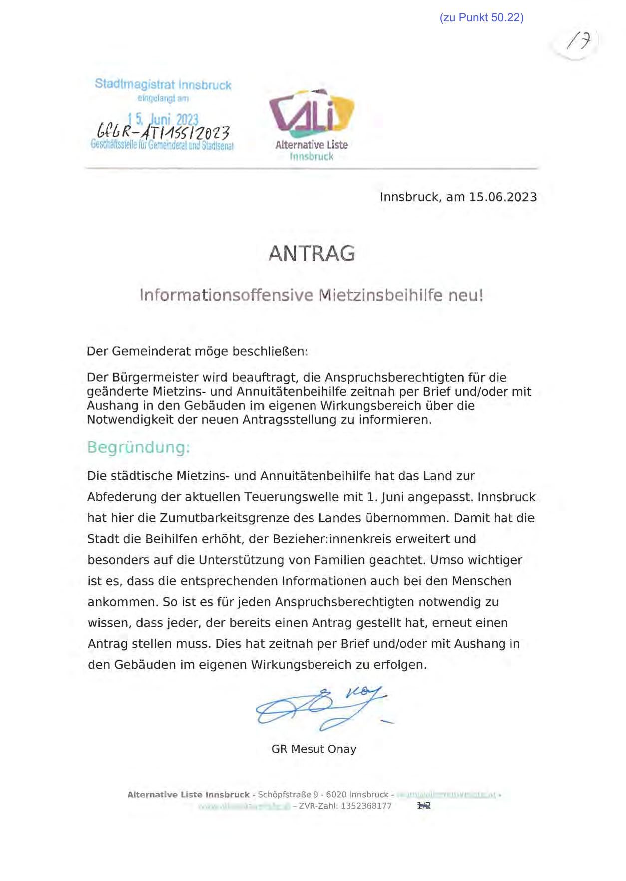 Abfederung der aktuellen Teuerungswelle mit 1. Juni angepasst. Innsbruck