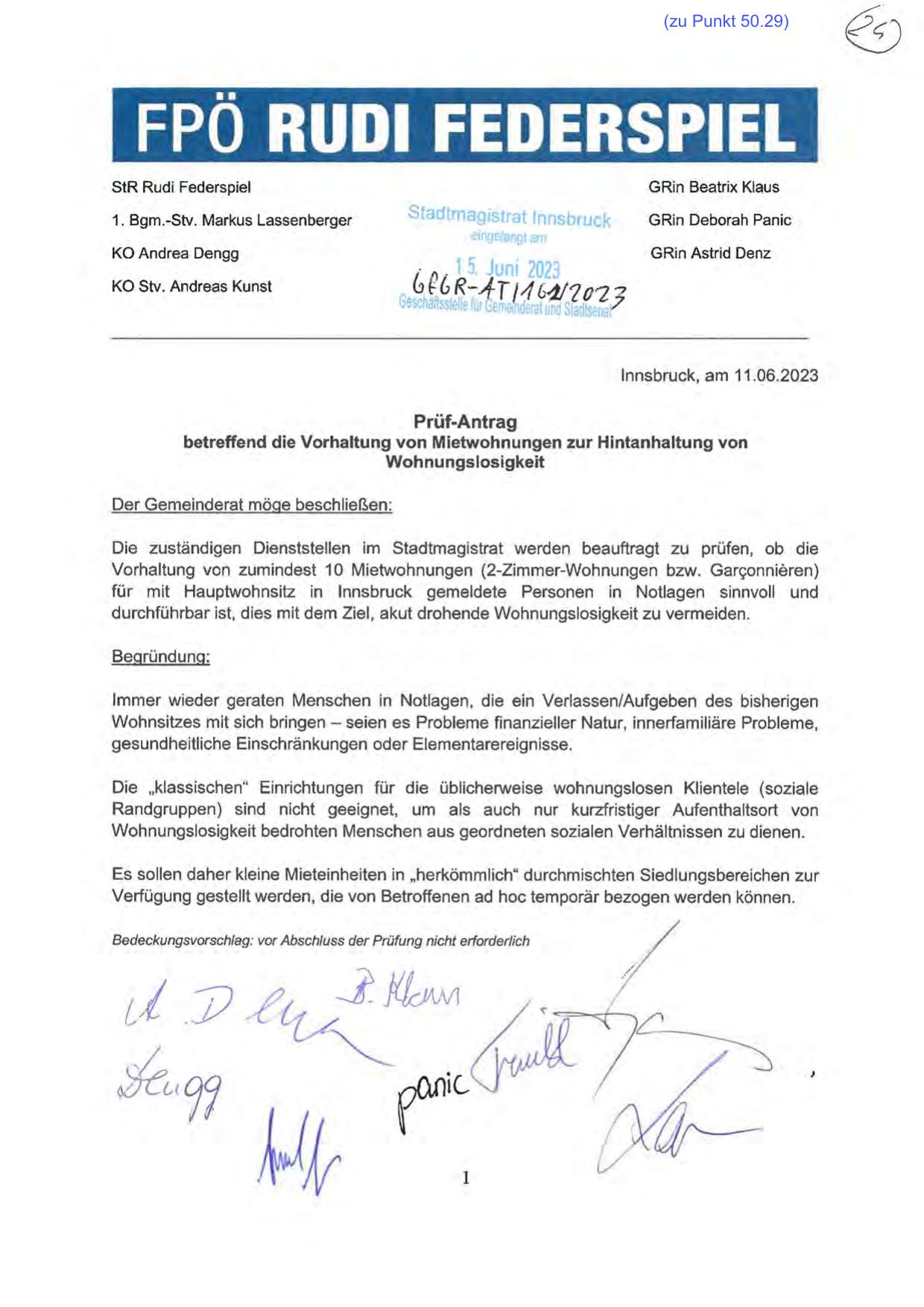 Die zuständigen Dienststellen im Stadtmagistrat werden beauftragt zu prüfen, ob die