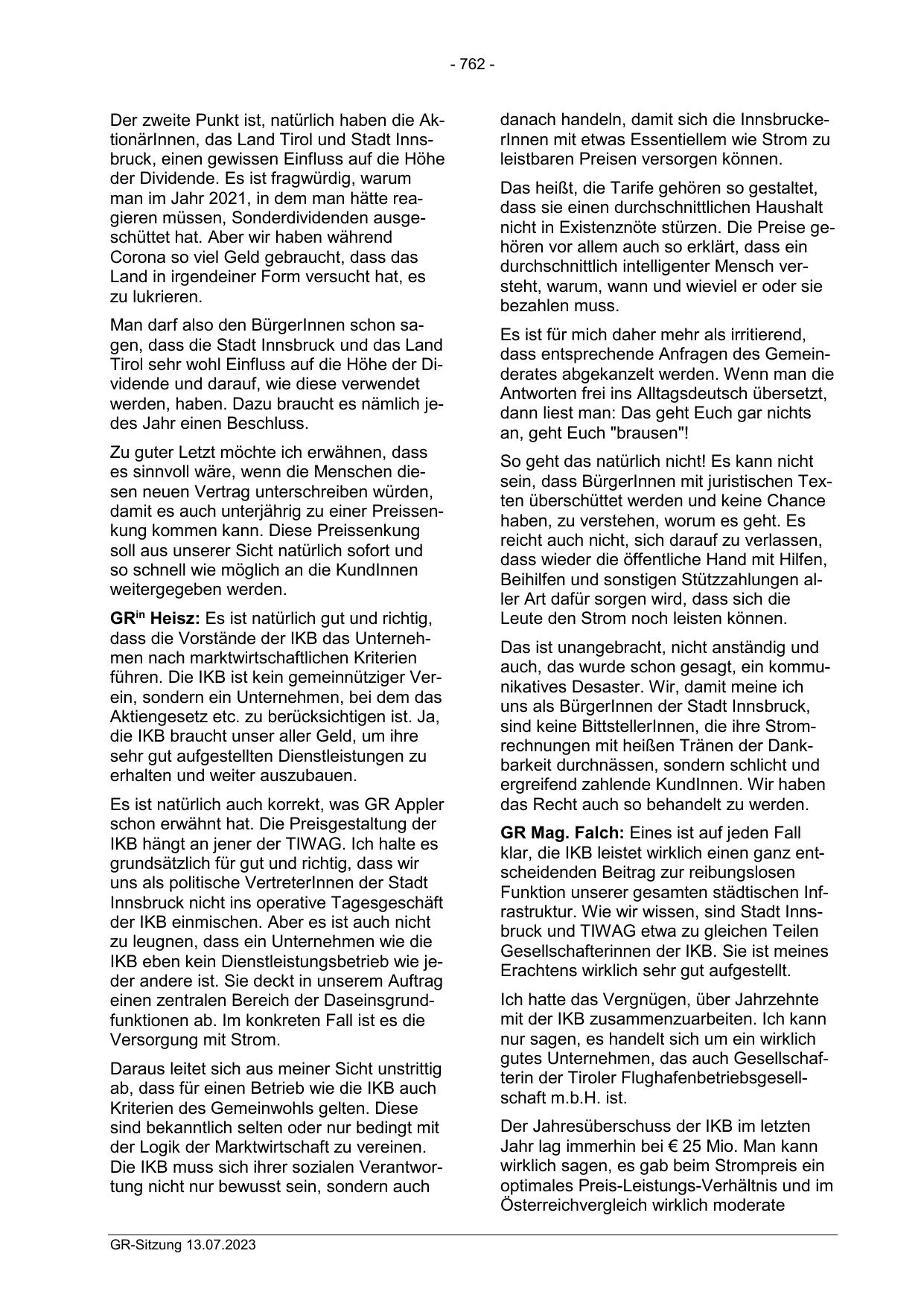 Der zweite Punkt ist, natürlich haben die AktionärInnen, das Land Tirol und Stadt Innsbruck, einen gewissen Einfluss auf die Höhe