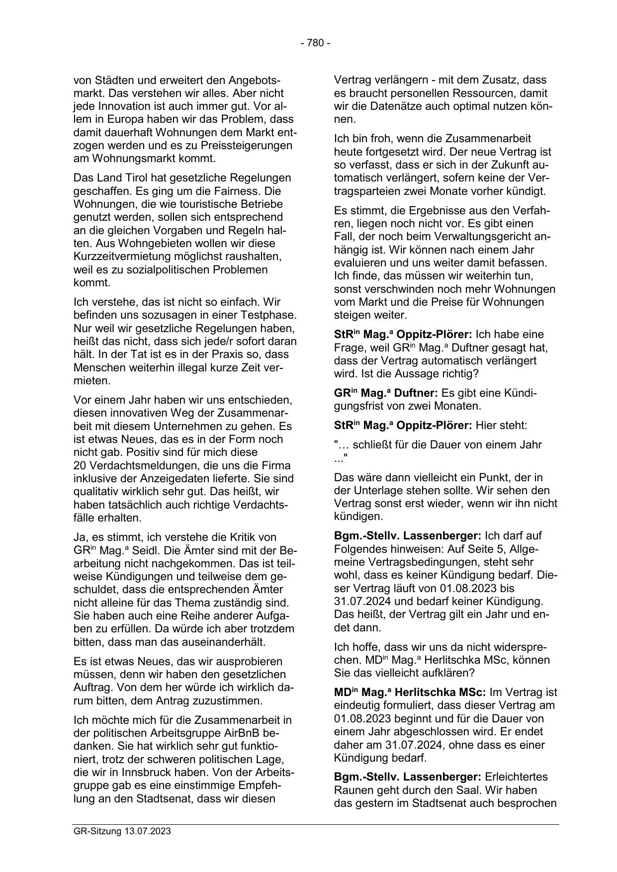die wir in Innsbruck haben. Von der Arbeitsgruppe gab es eine einstimmige Empfehlung an den Stadtsenat, dass wir diesen