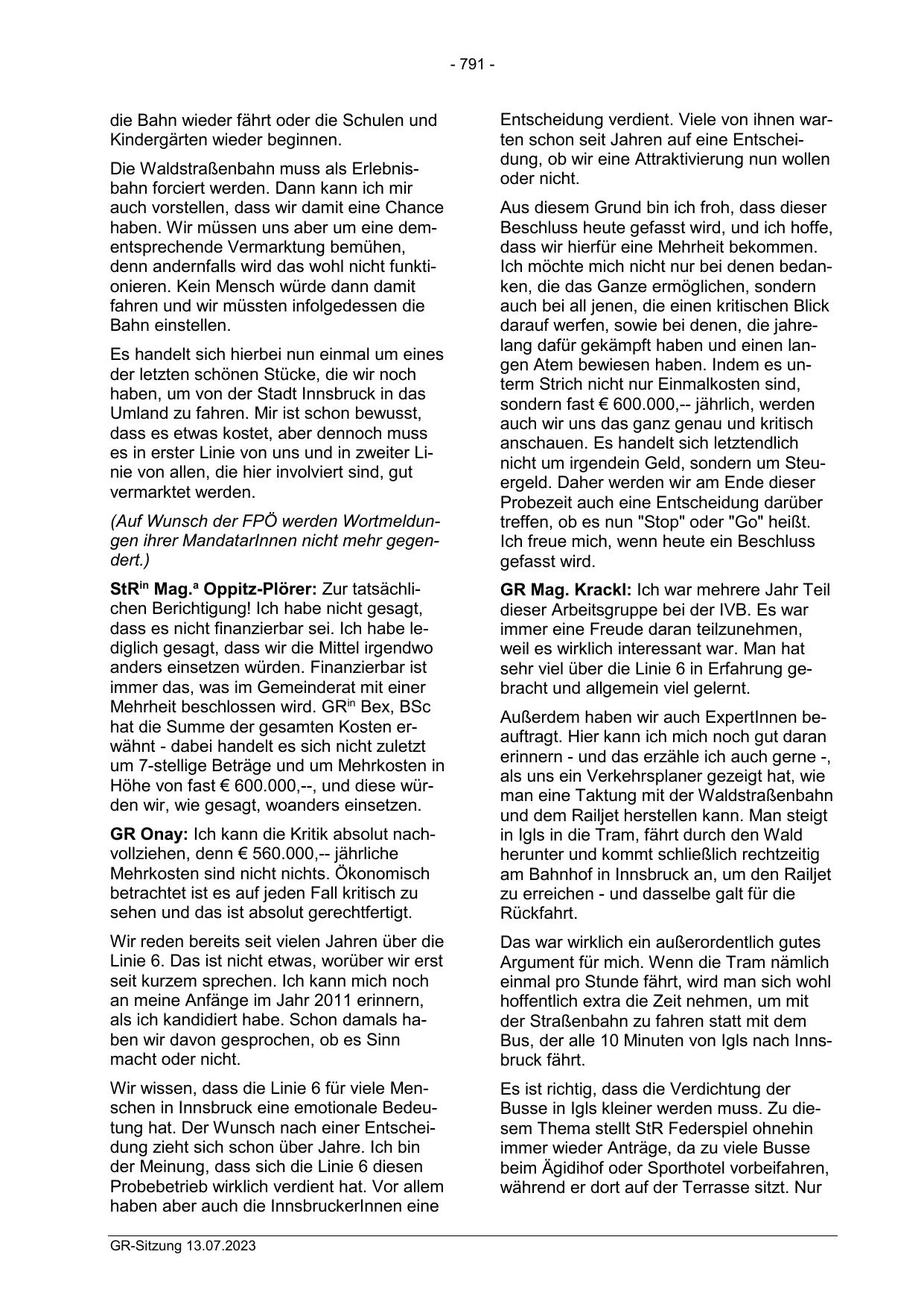 (Auf Wunsch der FPÖ werden Wortmeldungen ihrer MandatarInnen nicht mehr gegendert.)