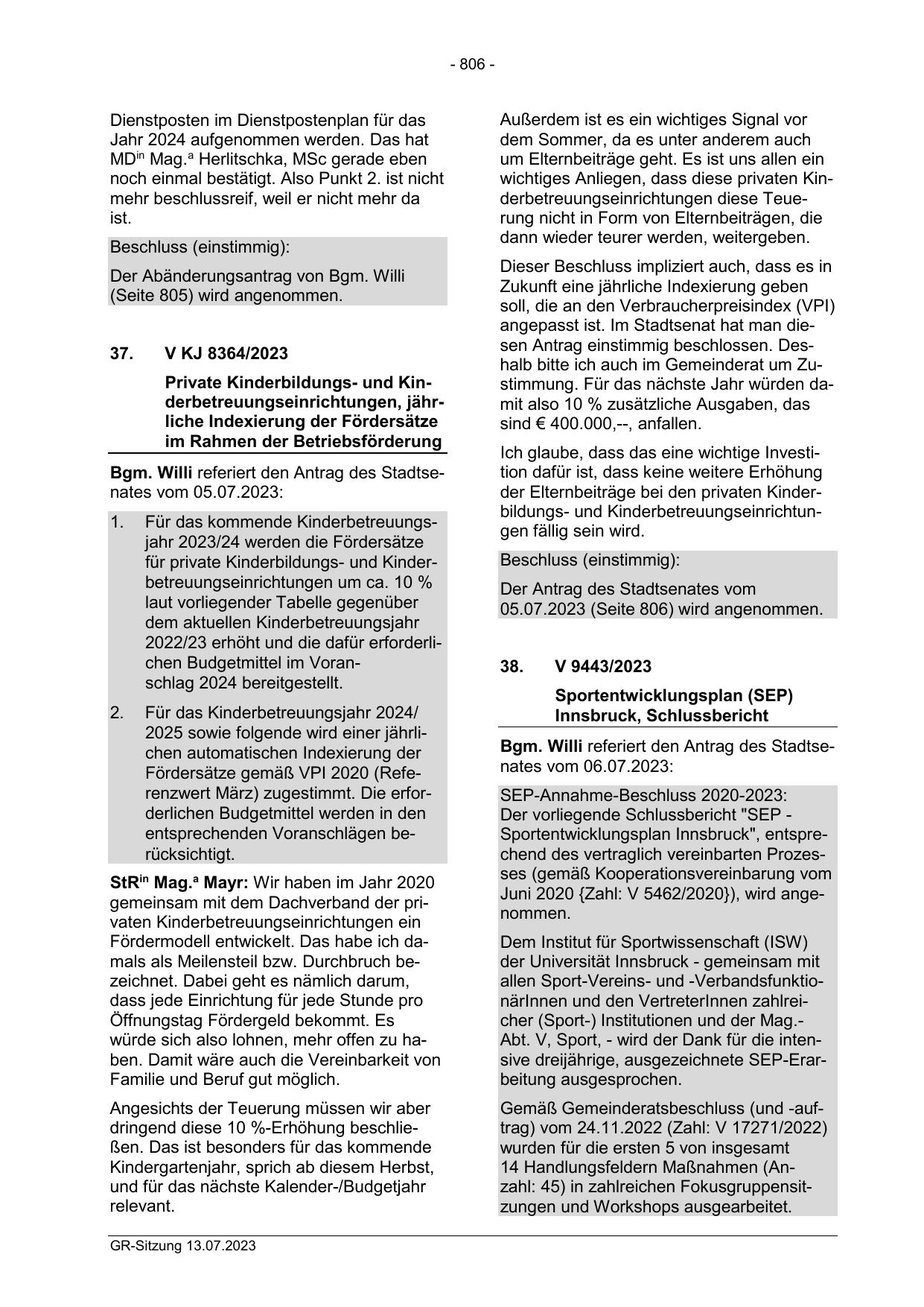 05.07.2023 (Seite 806) wird angenommen.