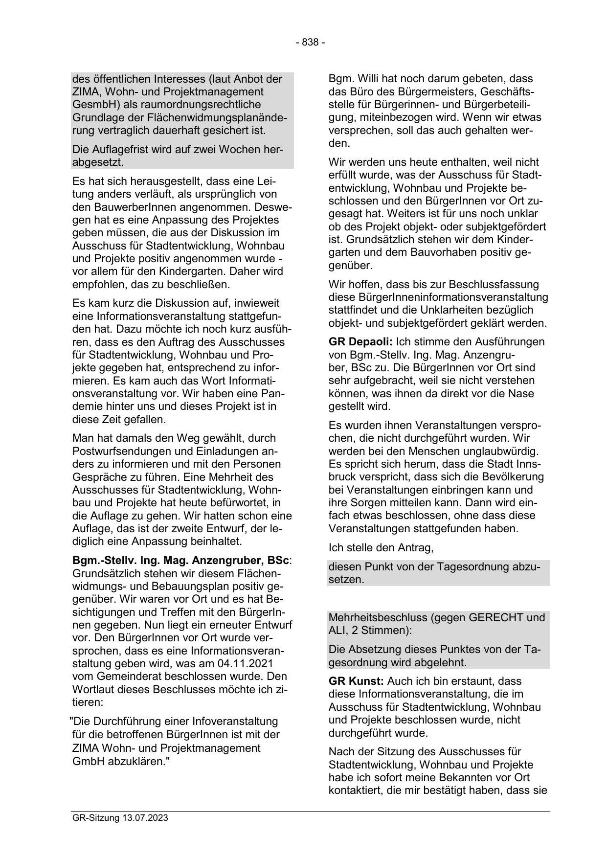für Stadtentwicklung, Wohnbau und Projekte gegeben hat, entsprechend zu informieren. Es kam auch das Wort Informationsveranstaltung vor. Wir haben eine Pandemie hinter uns und dieses Projekt ist in