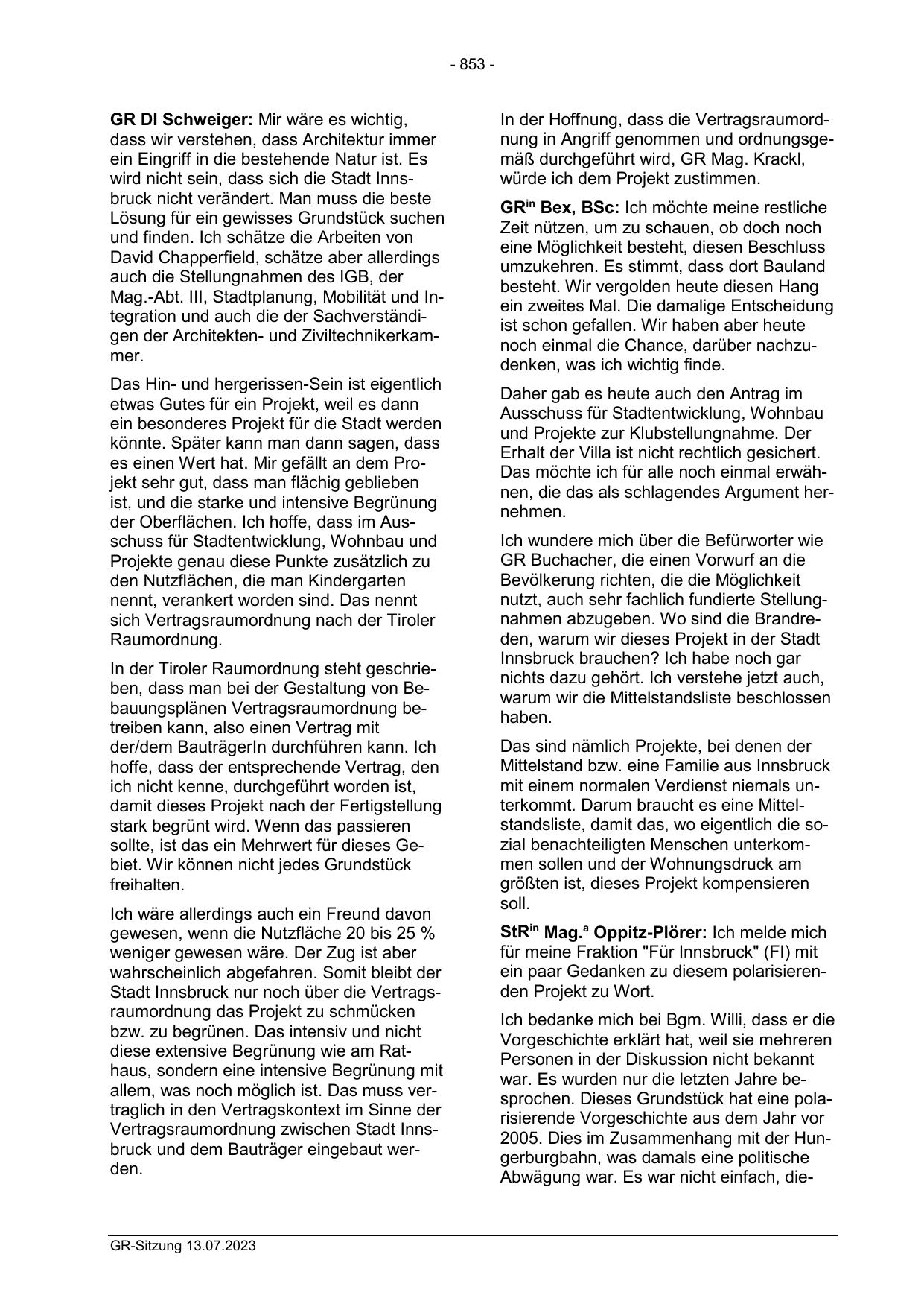 Stadt Innsbruck nur noch über die Vertragsraumordnung das Projekt zu schmücken