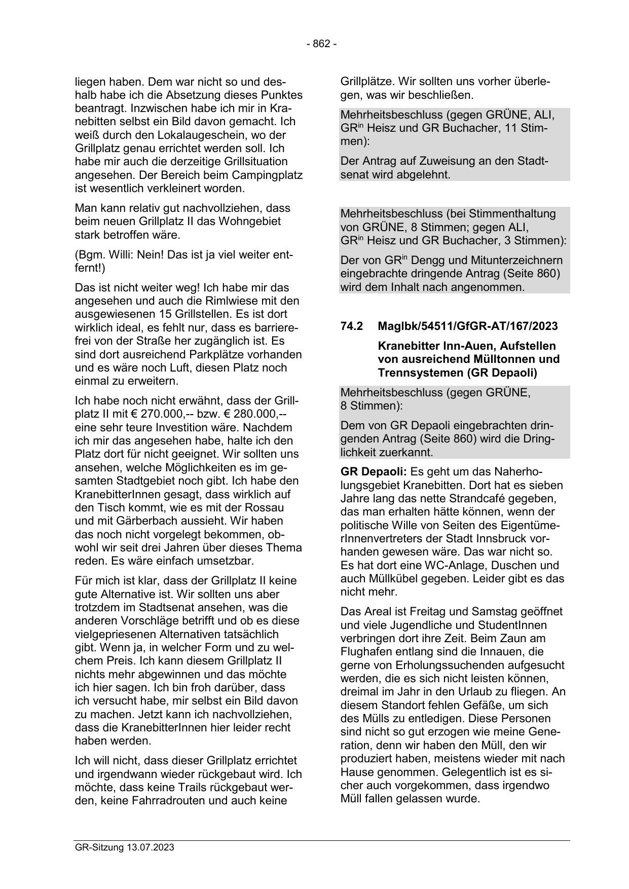 GR Depaoli: Es geht um das Naherholungsgebiet Kranebitten. Dort hat es sieben