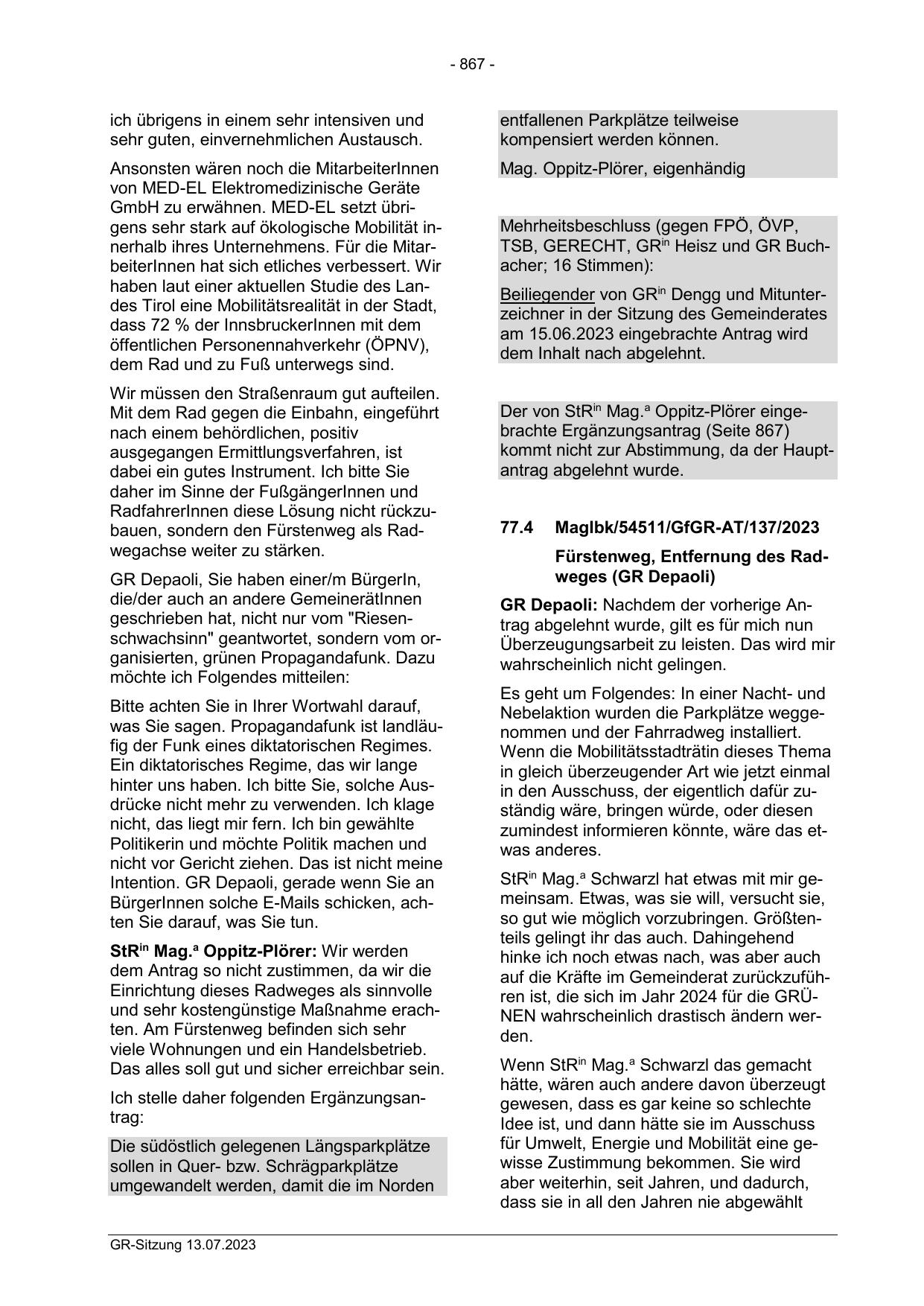 Der von StRin Mag.a Oppitz-Plörer eingebrachte Ergänzungsantrag (Seite 867)