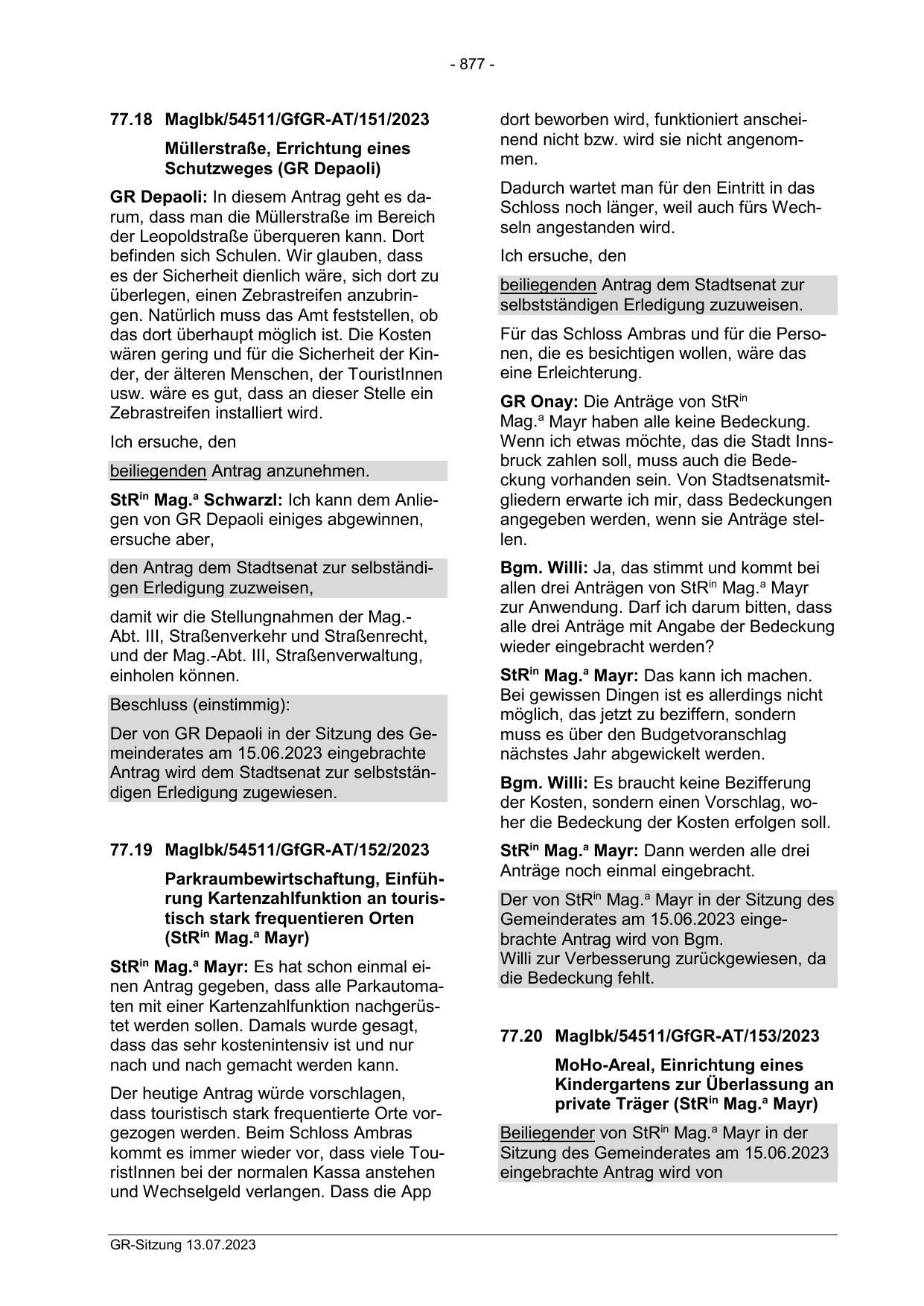 Der von GR Depaoli in der Sitzung des Gemeinderates am 15.06.2023 eingebrachte
