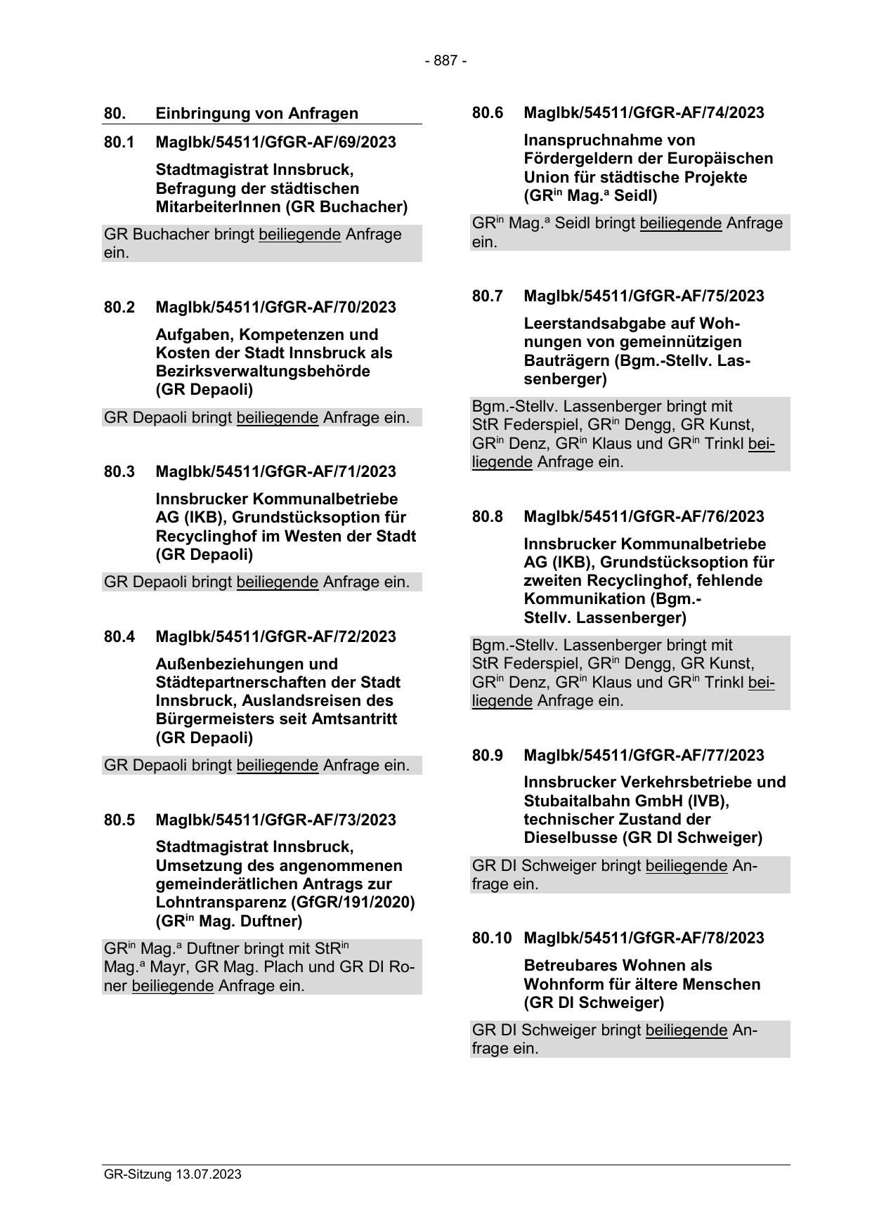 GR DI Schweiger bringt beiliegende Anfrage ein.