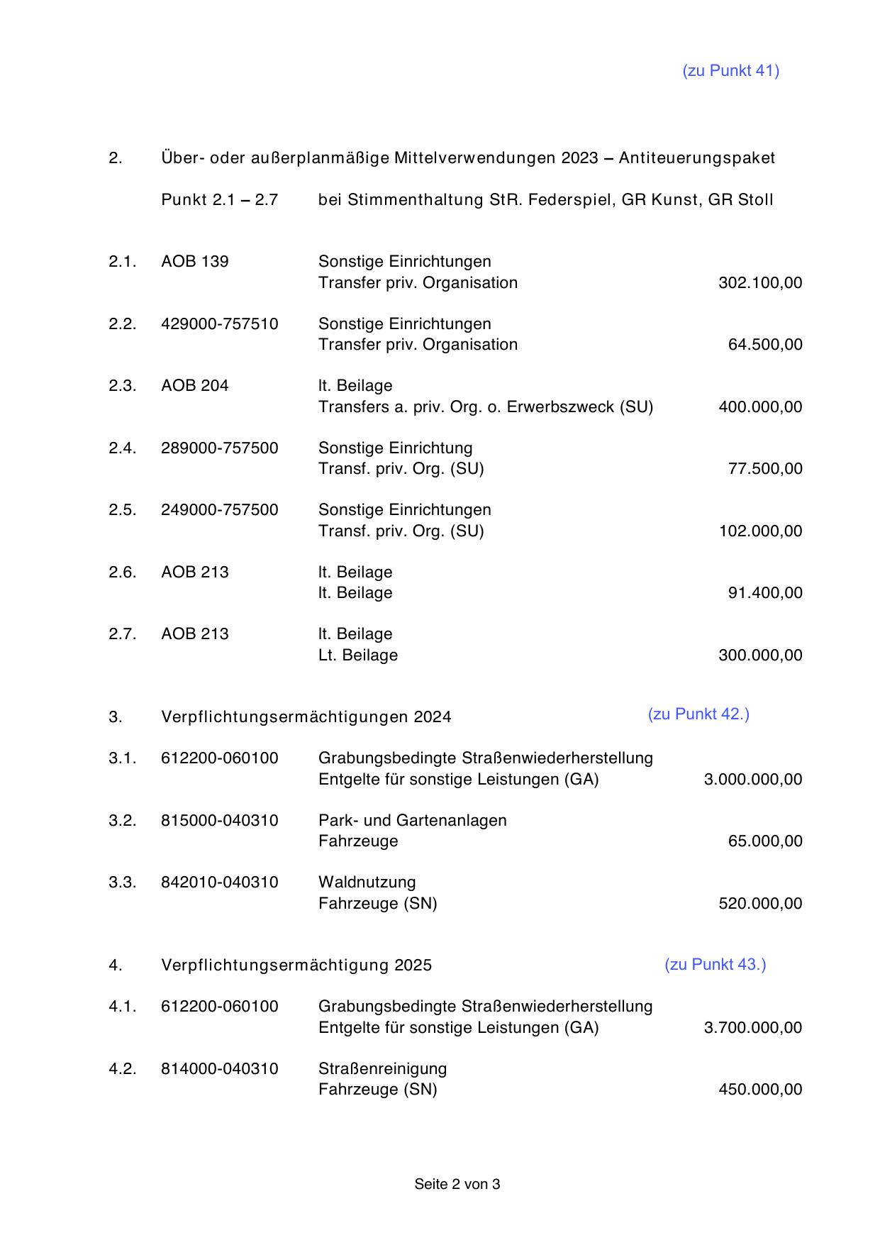 Über- oder außerplanmäßige Mittelverwendungen 2023 – Antiteuerungspaket