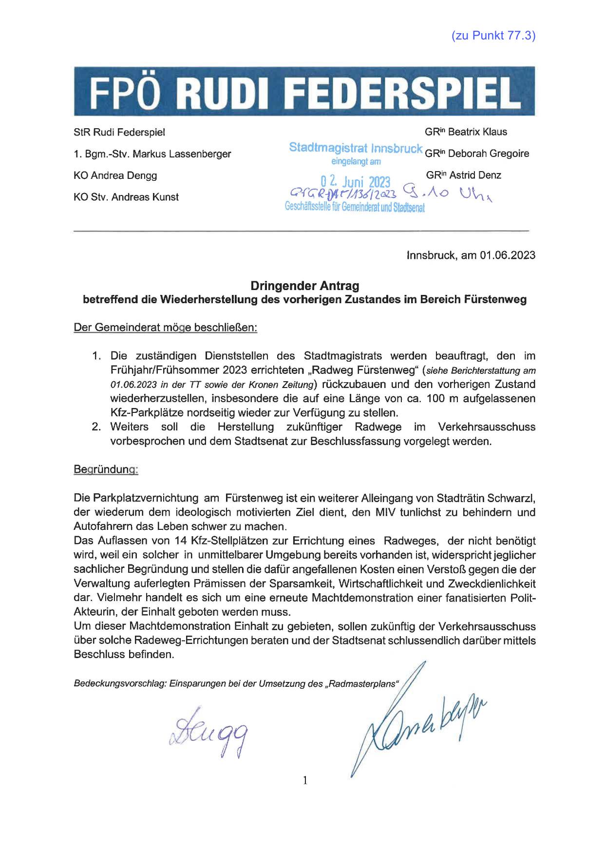 01.06.2023 in der TT sowie der Kronen Zeitung) rückzubauen und den vorherigen Zustand