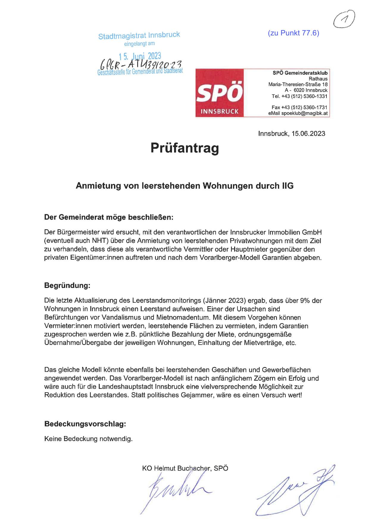 Der Bürgermeister wird ersucht, mit den verantwortlichen der lnnsbrucker Immobilien GmbH