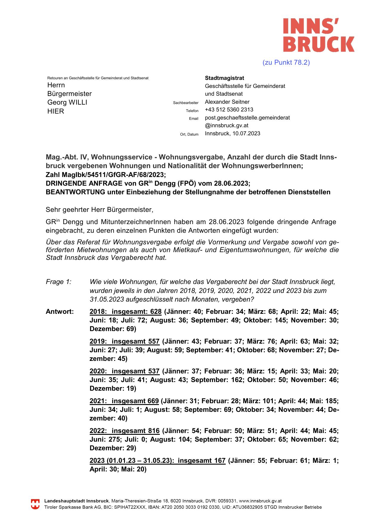 GRin Dengg und MitunterzeichnerInnen haben am 28.06.2023 folgende dringende Anfrage