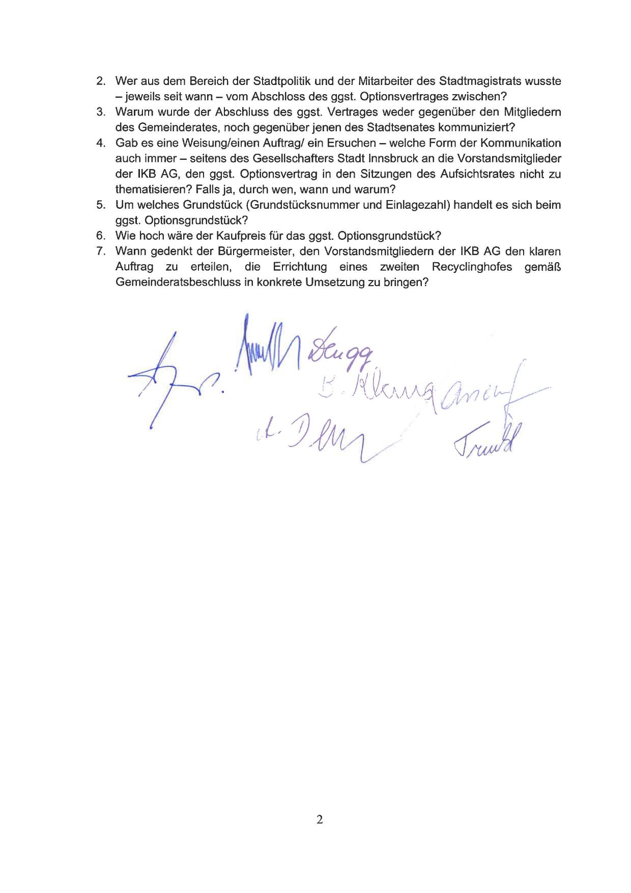 2. Wer aus dem Bereich der Stadtpolitik und der Mitarbeiter des Stadtmagistrats wusste