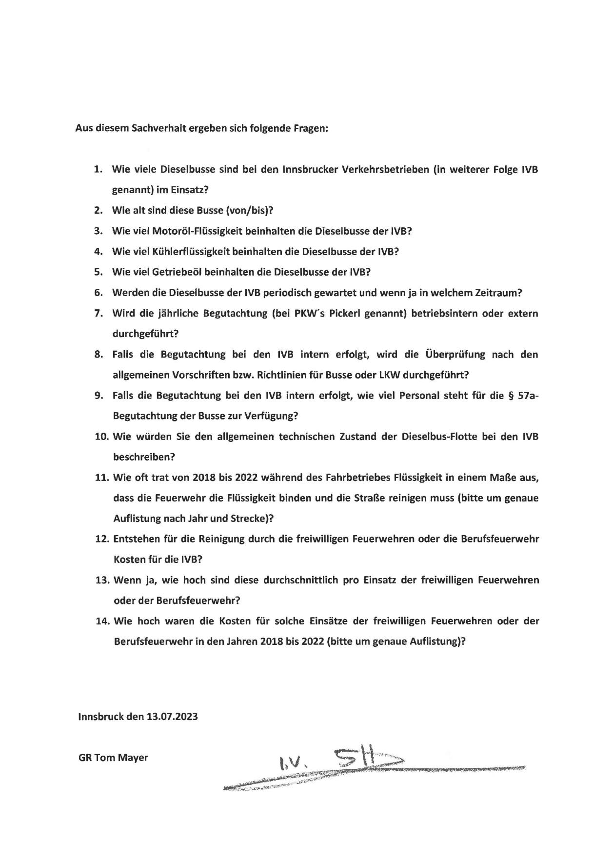 1. Wie viele Dieselbusse sind bei den lnnsbrucker Verkehrsbetrieben (in weiterer Folge IVB